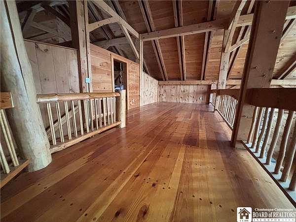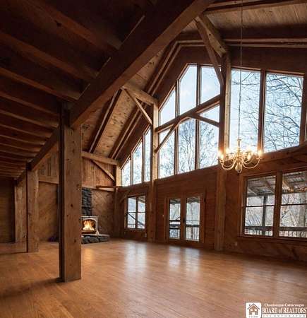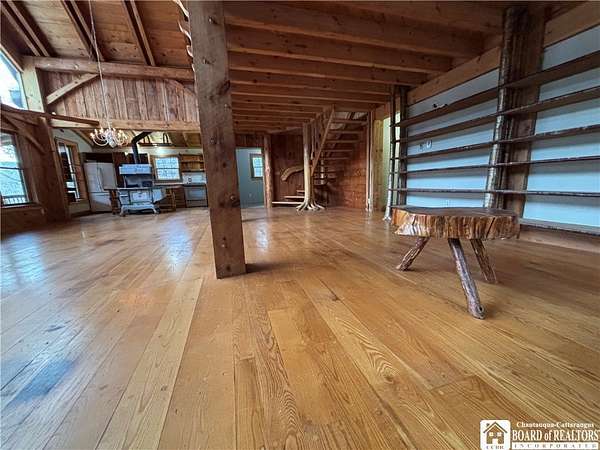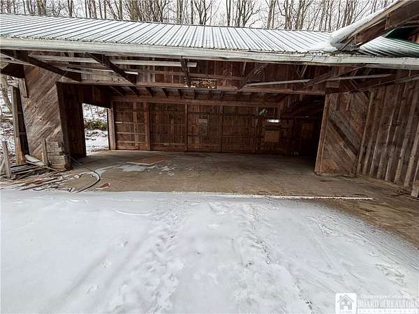 Custom Post & Beam Home + 7,884 Sq. Ft. Commercial Shop on 15.8 Acres - Independence, NY A rare opportunity to own a handcrafted post-and-beam residence paired with a large commercial shop, all situated on 15.8 private acres in the rural Town of Independence, NY (Whitesville Central School District). Built in 2010, the 2-bedroom, 3-bath contemporary home features exposed post-and-beam construction, soaring ceilings, expansive windows, and warm natural woodwork throughout. The open main living area is filled with natural light and character. The home offers approximately 2,194 sq. ft. of finished living space, plus a finished partial basement (approx. 960 sq. ft.) currently used as a recreation area, ideal for hobbies, fitness, or media space. The kitchen blends rustic charm with functional design and includes a wood-fired cookstove. Heating options include natural gas in-floor radiant heat with cast-iron radiators in the basement, along with a wood stove for added warmth and ambiance. A covered porch overlooking a flowing stream provides a peaceful outdoor setting. The home is vacant and winterized. Also included is a 7,884 sq. ft. commercial shop +/- constructed with board-and-batten siding and a durable metal roof. The building features concrete floors throughout, multiple work bays, and sliding doors on both ends providing excellent access for trucks, equipment, and materials. The structure is largely insulated and equipped with 3-phase electric 480V, natural gas service, and a 230,000 BTU wood boiler supplying in-floor radiant heat. Door height is approximately 12 feet, with 13.5-foot ceiling height, allowing for larger vehicles and machinery. Previously used as a sawmill and custom boat-building facility, the shop is well suited for light industrial, agricultural, forestry, construction, or trades-based operations. The shop is vacant, with tools and equipment removed. Located just off State Route 248, the property offers privacy, versatility, and convenient access. Approximately 2 hours from Rochester, NY and 2 hours 15 minutes from Buffalo, NY.