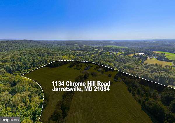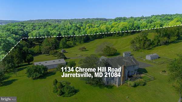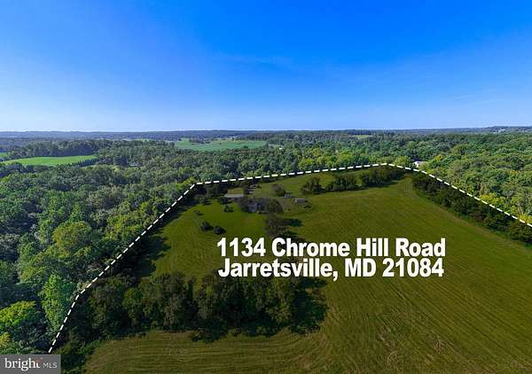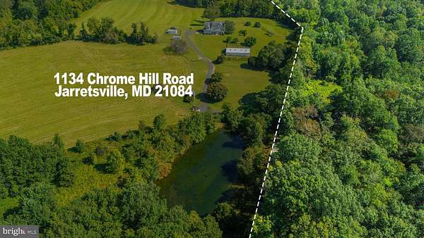 Nestled in the heart of Jarrettsville, this stunning estate-style Colonial sits on 25 picturesque acres of gently rolling countryside, complete with a spring-fed pond, open fields, mature trees, and breathtaking views in every direction. Set far off the main road, a newly paved asphalt driveway winds its way through the property, offering a grand sense of arrival and exceptional privacy. At the entrance, you'll find a custom enclosed front porch with floor to ceiling windows, sliding glass doors perfect for beautiful days to enjoy the breeze and panoramic views of the surrounding landscape. Inside, the main level features an abundance of living space, 9-foot ceilings, crown molding throughout, and a dramatic two-story foyer with hardwood flooring. Conveniently located off the entryway is a half bathroom, perfect for guests. The main level offers a flowing layout with multiple spaces for relaxation and entertaining. Enjoy gatherings in the bright and inviting living room, unwind in the cozy sitting room, or host memorable dinners in the formal dining room. Each space is thoughtfully arranged to balance functionality with charm. The spacious great room is also sure to impress with cathedral ceilings, skylights, custom windows, and a cozy wood-burning fireplace, creating a warm and inviting space to gather. The eat-in kitchen offers a breakfast bar, ample cabinetry, and generous table space. Just off the kitchen, French doors lead to a rear deck overlooking the rolling hills-an ideal backdrop for relaxing or entertaining. A mudroom/laundry room is conveniently located off the 2-car side-load garage, and the main level also offers the potential for a first-floor primary suite with minimal modifications-perfect for multi-generational living or future flexibility. Upstairs, you'll find four oversized bedrooms with plenty of storage and a full hallway bathroom. The primary suite is a true retreat, entered through double doors, and featuring hardwood flooring, vaulted ceilings, a sitting room, walk-in closets, and a spacious en-suite bath with a soaking tub and separate shower. The lower level offers nearly 1,500 square feet of additional potential, featuring very high ceilings, full-size windows, and walk-out access to grade. Already insulated and equipped with a bathroom rough-in, this space provides the perfect opportunity for a future homeowner to design their desired layout-whether it's a rec room, in-law suite, home gym, or additional living space. Outside, the property continues to impress with a large barn equipped with electric-also ideal for a workshop, storage, or a hobby enthusiast -as well as three separate sheds for all your tools and equipment. This one-of-a-kind property is ideal for a family compound, multi-generational living, or anyone seeking extra privacy and room to spread out. Whether you're looking for a peaceful retreat or a forever home surrounded by nature, 1134 Chrome Hill Road offers space, beauty, and unmatched potential. Professional Photos to come!