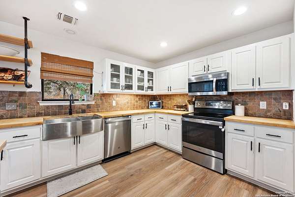Brimming with modern updates and farmhouse charm, you won't want to miss this incredible opportunity that offers space and versatility for all of your needs. Sitting on over 2 acres, the stylish fully renovated 4 bedroom, 3 bath home has an exceptional floorplan that showcases two primary suites on the main floor and an upstairs flex room for endless possibilities. The updated gourmet kitchen has abundant cabinet and counter space, stainless steel appliances, and an expansive island. The main primary suite is a haven of tranquility with outdoor access and a remodeled spa-like bathroom. Cozy up by the fireplace in the living room or retreat to the upstairs flex area for a secondary living room option. Outdoors, the space transitions you to ideal country living. Enjoy relaxing from either of the covered porches that overlook a peaceful and shaded surrounding with a ton of wildlife. The acreage and cross fencing provides additional grazing for horses or cattle.. bring your animals! Private electric entry gate. Detached 3 car garage with carport provides ample parking and storage. Recent front porch deck/railings/beams, water heater, waterproof vinyl plank flooring, baseboards, interior/exterior paint, updated hardware, plugs/switches, shed lean-to, landscaping and much more. Come discover the quiet and serene lifestyle that awaits you!