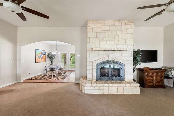 Experience country living with this well-maintained 3-bedroom, 2.5-bath home, built in 2005. Situated on 13.53 acres, this property offers modern amenities, equestrian facilities, and plenty of space to enjoy the outdoors. Inside, the open-concept den, dining area, and kitchen create a warm, inviting atmosphere. The den features an Austin-stone wood-burning fireplace, while the kitchen offers custom cabinetry, granite countertops, a farm-style sink, and a free-standing smooth-top electric stove. The primary suite includes two walk-in closets and a spacious en-suite bath with a jetted garden tub, step-in shower, dual vanities, and a private water closet. Two additional bedrooms share a Jack-and-Jill bath with dual vanities. Equestrian features include a refurbished barn with a tack room, shop, two stalls with attached outdoor paddocks, and an automatic waterer. The barn also offers covered storage up to 14', ideal for a large horse trailer. The pasture is smooth wire fenced and cross-fenced with gate access between fields, with water access available to all pastures. A loafing shed and an approximately 80' x 150' riding arena add to the property's functionality. Additional highlights include: a brand-new air conditioner installed in March 2025, 50-amp RV outlet by the house, 120V outlet in the backyard, two Nest thermostats (programmable to your phone), a recently replaced garage door (also smartphone programmable), and a newer refrigerator (1.5 years old). Washer and dryer are included. Conveniently located just a short drive to the Young County Arena--host to numerous equestrian events--this property blends comfort, practicality, and accessibility. Don't miss this opportunity to enjoy quiet country living just outside of town. Schedule your showing today!