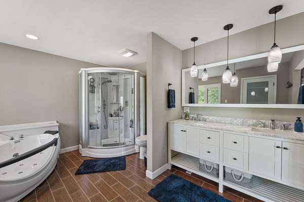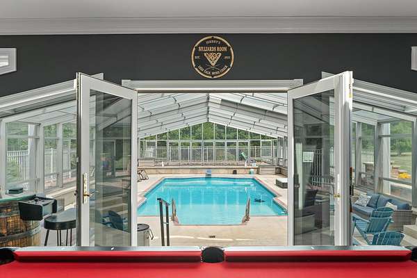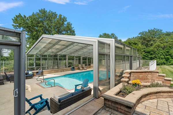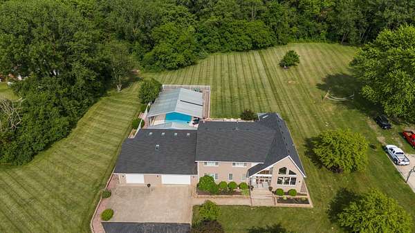 Back on the market, no fault of the seller. Welcome to this rare opportunity, where luxury meets lifestyle. Set on 2.5 generous acres, this exceptional property strikes the perfect balance between suburban living and private retreat. Inside, the beautifully appointed eat-in kitchen features granite countertops, stainless steel appliances, and a state-of-the-art smart refrigerator that lets you stream music, explore recipes, and create a shopping list at the touch of a screen. The main level flows effortlessly, with refinished red oak hardwood floors, updated baseboards, and custom railing leading to the second floor. A light-filled addition off the living room creates the ultimate space for entertaining. The home offers a thoughtful layout with a main-level bedroom complete with an en suite bath--ideal for guests or multigenerational living--as well as main-level laundry for convenience. Upstairs, the spacious primary suite is a true retreat, featuring a private walkout balcony, walk-in closet, double vanity, and luxurious jetted soaking tub. The basement level offers 2 bonus rooms--perfect for a home gym, office, or music studio. Newer skylights throughout flood the home with natural light, while a BRAND NEW ROOF (2024) ensures peace of mind for years to come. Step outside to an all-season oasis, where a heated in-ground pool and hot tub await beneath a FULLY RETRACTABLE DOME. This remarkable feature offers a seamless connection to the outdoors--no matter the season. Whether you're enjoying morning laps in January or hosting a summer gathering under the open sky, this space adapts beautifully to your lifestyle. This is more than just a home--it's a lifestyle. Don't miss your opportunity to experience luxury living in a setting that feels both grand and grounding. BRAND NEW asphalt driveway just completed on 9/16/25!