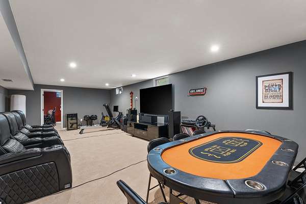 - Basement, Bathroom x 5, Bedroom x 4, Bonus Room, Dining Room, Family Room, Game Room, Kitchen, Laundry, Living Room, Media Room