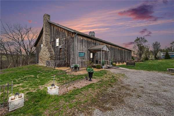 Unique Wedding & Event Venue with Heart and History This thriving, one-of-a-kind wedding venue-nestled in the rolling countryside of Northwest Missouri, perfectly situated on 7.7 acres between Kansas City and St. Joseph, is ready for its next chapter. After years of pouring their heart and soul into every detail, the owners are retiring-offering an incredible opportunity for the next visionary to step into a fully operational, well-loved business with deep roots and endless possibilities. This building is an elegant structure featuring a 70 foot great hall, graced by 2 balconies and 22 individual rooms. The main floor boasts a beautiful native stone fireplace, designated bar area, full kitchen, and allocated storage rooms. The second story showcases a 2-bedroom, 2-bathroom cottage equipped with a kitchenette, providing comfortable and convenient guest quarters. The full walkout basement is spacious and versatile, offering storage and utility spaces equipped with a garage door, along with an unfinished apartment. Other features include ample parking, recently updated HVAC systems, and picturesque landscaping. Sale includes an extensive inventory of on-site decorations, kitchen supplies, tables and settings, chairs, and space decor. This business is sold with clients, contacts, and a fully functional website (linked below)--providing a turn-key event setup solution for future owners or operators.