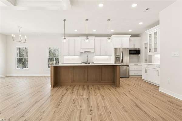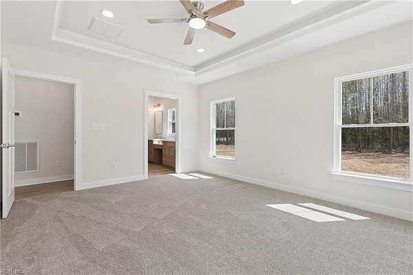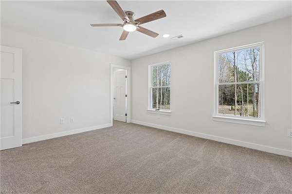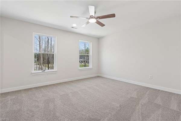 Beautiful completed new construction home with amazing Piankatank River views. At 2,972 sqft of living space, the home offers 4 bedrooms, 2.5 baths on 2.43 acres! This home is built by a reputable Class A builder, with a focus on quality and modern convenience. The home includes features often overlooked by builders: plentiful recessed lighting, coffered ceiling, garage door opener, ceiling fans, a backsplash, and ceiling-height tile showers. The open floor plan features a custom kitchen with a large island, quartz countertops, tile backsplash, and stainless steel appliances overlooking a dining and living room. A spacious primary suite, study, and laundry room round out the first floor. Upstairs you'll find three more bedrooms, a full bath, a loft area and a flex room for an office or playroom. A walk-in attic provides plenty of storage. Enjoy relaxing on the covered porch overlooking the large backyard.