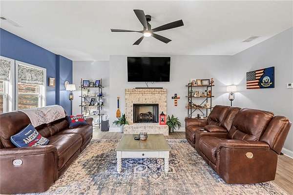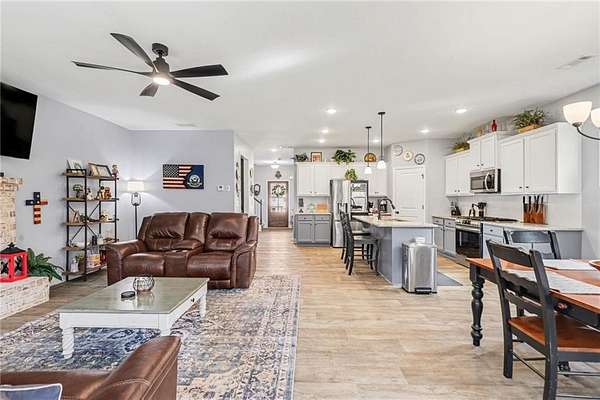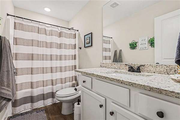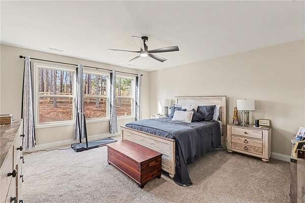 Welcome home to this thoughtfully designed floor plan featuring an open-concept kitchen and family room - perfect for gathering and entertaining. Crisp white cabinetry, a large center island, and generous prep space create a bright, inviting heart of the home. A main-level guest bedroom and full bath offer flexibility for visitors, multigenerational living, or the ideal private home office. Step outside to a rear patio overlooking a peaceful, private 1.71-acre backyard - plenty of space to relax, play, garden, or expand your outdoor living vision. Upstairs you'll find three additional bedrooms, including a spacious owner's suite with a walk-in closet and a comfortable retreat feel. An unfinished bonus room provides excellent storage now or the opportunity to finish it into a 5th bedroom, media room, or flex space. Situated on a quiet cul-de-sac lot in a charming subdivision with no HOA, this property offers both freedom and convenience. Dining, schools, golf, shopping, and interstate access are all within 4 miles - giving you privacy without sacrificing location. Complete with a Cinch home warranty.