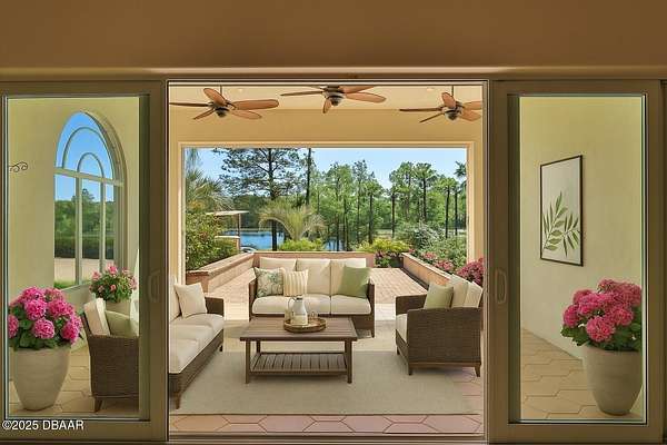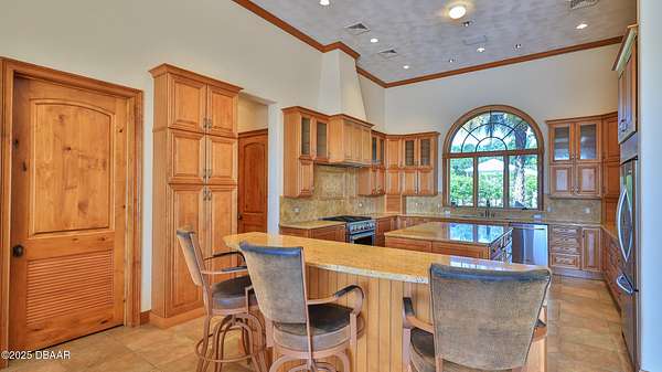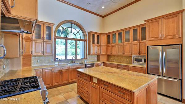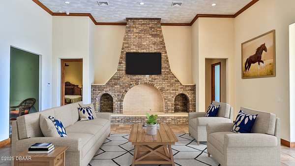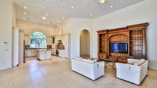 Exceptional 9-acre, 9 car garage lakefront estate with guest home, pool, outdoor kitchen and more, zoned for horses and no HOA. Only 38 minutes to Orlando and 30 minutes to the beaches! A Car enthusiast dream come true! This extraordinary lakefront compound offers a rare blend of luxury, privacy and versatility. Custom-built by the Troy Building Company, this estate includes a 3-bedroom, 3-1/2 bath main home with the flexibility to convert to a 4th bedroom. The Guest home enjoys over 2000' of living area with 2-bedrooms, 2-baths. This estate has over 6,000 square feet of heated and cooled living space and more than 11,000 square feet under roof. The main home and guest house boast elegant finishes including top-of-the-line MasterCraft solid wood cabinetry, granite countertops and ceramic tile flooring throughout. Soaring 14-foot ceilings create a grand sense of space, while the main home also features a cozy fireplace that is ready with a gas line. The heart of the home opens to a slide-away screen and covered porch with an exceptionally equipped outdoor kitchen, ideal for entertaining year-round. The private guest home offers complete independence with its own full kitchen, dining room, living area and slide-away screening on the porch, ideal for extended family, long-term guests, or generating rental income through short-term or long-term leasing. It offers all the same high-end finishes and thoughtful design as the main residence, ensuring comfort and luxury for any use. Enjoy serene lakefront living with your own private pier and unwind in the oversized, heated and cooled 15-by-37-foot pool, featuring a remote-operated electric pool safety cover for convenience and peace of mind. A paver-lined circular driveway stretches from the gated entrance to the front of the home, creating a striking first impression. The Nine-car garage, connected with a breezeway to the main home, currently includes a climate-controlled 29-by-15-foot workshop for hobbies, storage or creative space. A separate 17-by-25-foot block storage building provides additional space for tools or equipment. Built with well-insulated block and stucco construction, this property offers exceptional durability and energy efficiency. While a portion of the acreage includes the lakefront, the land is fully fenced, making it ideal for horses, pets or added privacy. Whether you're seeking a private retreat, multigenerational living, income-generating potential, or an equestrian-friendly sanctuary, this unique estate delivers the best of Florida living, luxury, privacy and convenience in one incredible package. Just a short drive to Florida's popular beaches and world-renowned Orlando theme parks and entertainment, this estate offers a balance of peaceful seclusion and easy access to everything Central Florida has to offer.