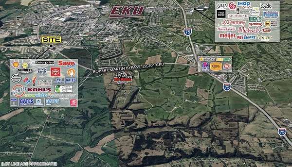 Est $2,810/mo0.77 Acres within Merchant Place Development Ideal location for restaurants, banks, retail, flex, or office Utilities to site Located off Richmond Bypass between Merrick Road and Four Mile Road Kohls Department Store anchored site with complimentary retail including Speedway, Citizens Guarantee Bank, Dominos, Popeye's, Stock Yards Bank, and New Vista Surrounded by retail and residential high density area