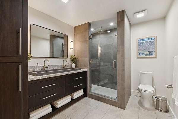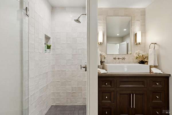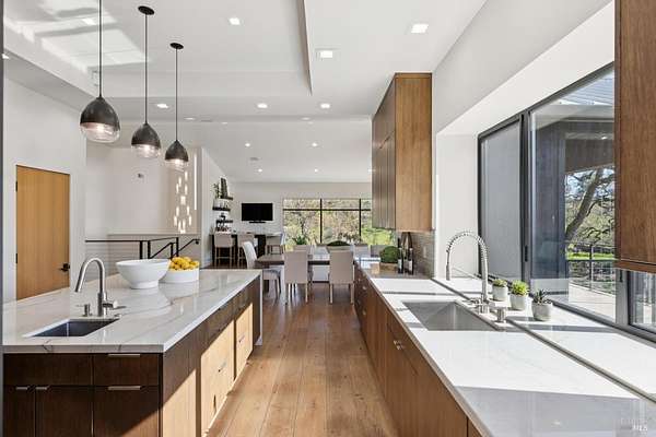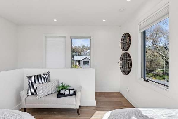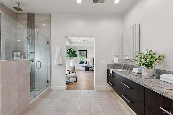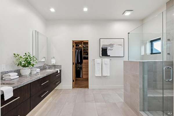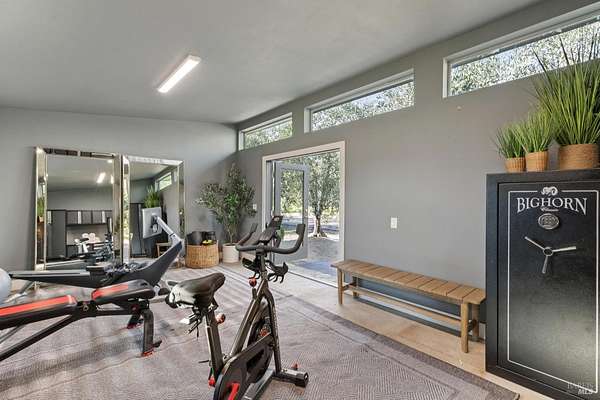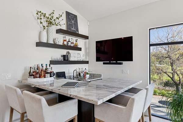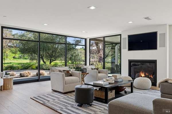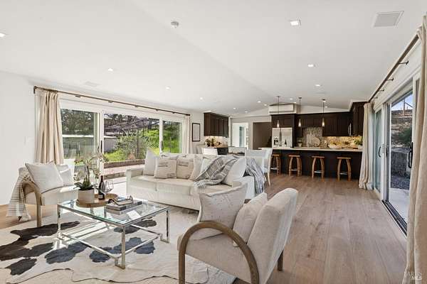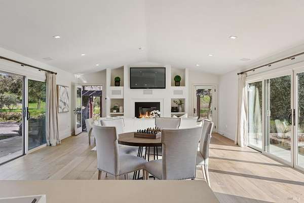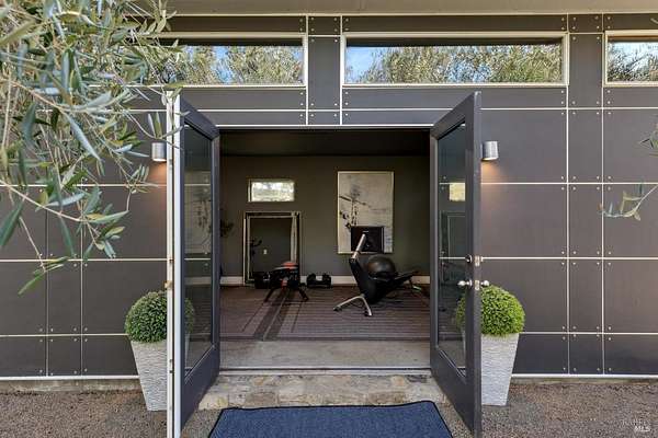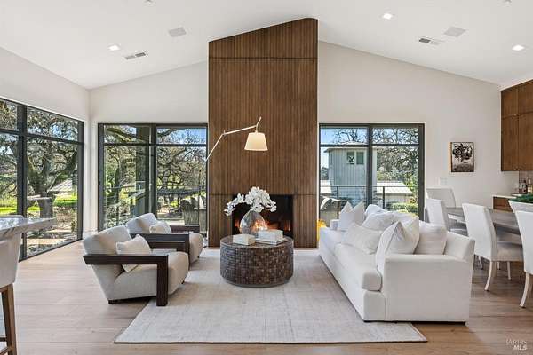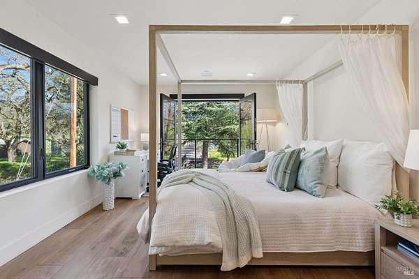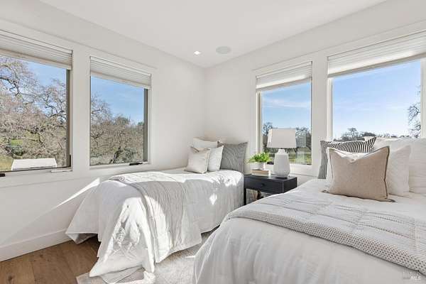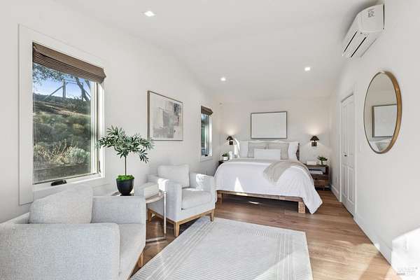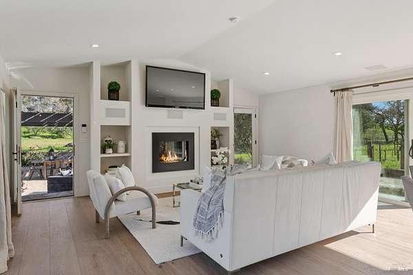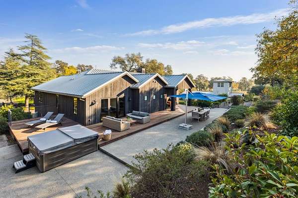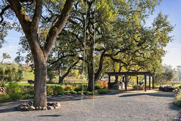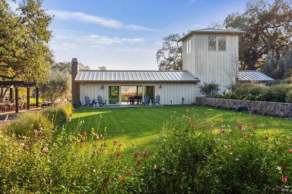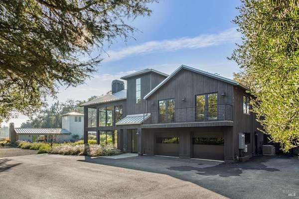 Napa Valley lifestyle property featuring modern farmhouse completed in 2021 & guest house remodeled in 2022 on 2.66 acres located in private gated pastoral setting 1 minute to Silverado Trail & minutes to downtown Napa & Yountville. Stunning main house with 4 BR 3.5 BA 4070 +/- sq ft, elevated ceilings & Fleetwood windows & doors throughout embodies wine country indoor/outdoor living with 2 separate living areas opening to private seating areas as well as expansive outdoor entertaining & dining area. Main level features great room with dramatic vaulted ceilings, fireplace & wet bar opening to professional-grade kitchen offering custom cabinetry with quartzite countertops, large center island with custom pendant lighting, counter seating & prep-sink, Blue Star 8 Burner gas cooktop with custom hood & pot-filler, Wolf double ovens, SubZero Refrigerator with water & ice and 2 Miele DWs. Spacious & private main ensuite offers spa-like bath with custom floating cabinetry, frameless glass enclosure shower with 2 shower heads & built-in seating, 2 closets including walk-in & built-in wall closet & retractable doors that open to private outdoor seating area with hot tub & wrap-around Ipe deck. Additional main house features include: temperature-controlled wine cellar, electric blinds, wide plank Oak flooring, Level 5 walls & 3 fireplaces (including 2 outdoor). Charming & sophisticated 1 BR with loft (currently used as a BR) 1 BA with full kitchen 1200 +/- sq ft guest house features spacious great room with fireplace & wood flooring opening to updated kitchen with stainless appliances, counter seating & custom RH pendant lighting. French & sliding glass doors open to outdoor entertaining areas including bocce court, large pergola with bistro lighting, outdoor kitchen with DCS grill & sink. Both main house and guest house flank an expansive lawn, with plenty of room for a pool, & farm-to-table pollinator garden with built-in garden beds, fruit orchard & custom rock walls with path lighting. 52 imported Italian olive trees produce delicious olive oil. Additional features include: studio currently used as exercise & yoga, owned solar, generator, excellent well (with 19 GPM) & water (filtration by North Coast Water Works) & gated entry with call box & paved drive flanked by an allee of olive trees. Delightful seasonal creek-side setting & pasture area ready for your hobbies or enjoy as-is.