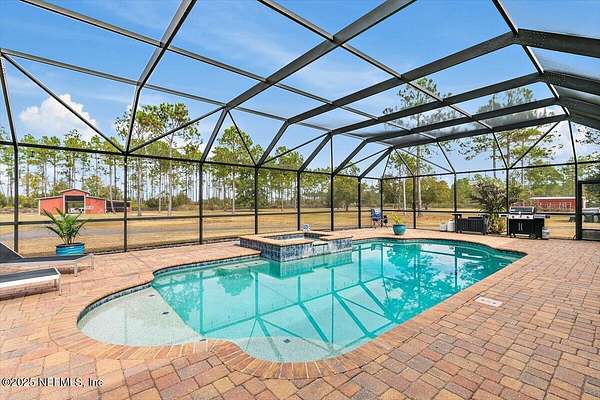Experience the pinnacle of private estate living with this extraordinary 10-acre sanctuary, where over $150,000 in recent upgrades & renovations elevate every detail. Just to name a few: the interior has been fully repainted, brand-new roofs were installed on both the main home & detached garage, and a new pool heater & pump were added-making this exceptional estate truly move-in ready. This one-of-a-kind property offers a seamless blend of luxury, functionality, & country elegance. The expansive 4,000+ sq ft main residence features 4 bedrooms, 3.5 bathrooms, a spacious upstairs bonus/media room, & a screened lanai overlooking the solar-heated saltwater pool & spa-perfect for entertaining or peaceful relaxation. In addition to the main home, the property includes a 2,000+ sq ft multi-generational apartment with 2 bedrooms, 2 bathrooms, a full kitchen, laundry, & private entrance, offering outstanding flexibility for extended family, guests, or rental potential. The grounds are equally impressive, showcasing a large detached garage, barn with tack room and hay loft, a stocked pond, and a charming one-bath cottage perfect for a home office, guest suite, teen or college apartment, or creative studio. Additional highlights include two irrigation systems, dual water softeners with advanced treatment, two RV hook-ups, and full water and electric service to both the detached garage and barn, with water access available throughout the property. This rare, horse-friendly estate delivers endless possibilities for private living, multi-generational arrangements, hobby farming, or equestrian useall in a serene and secluded setting.