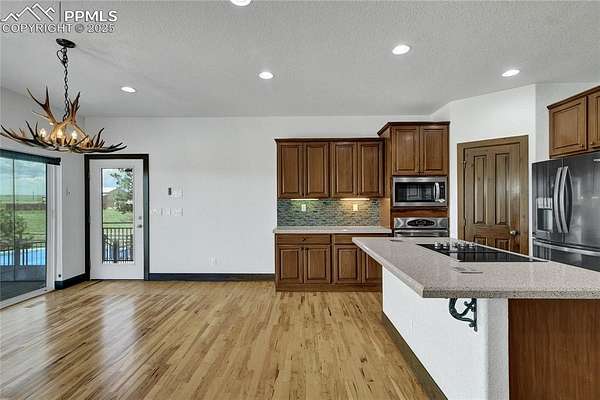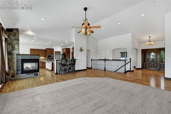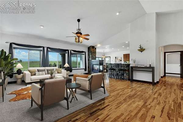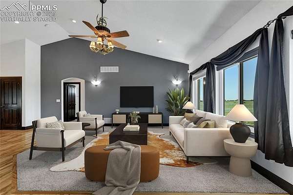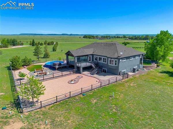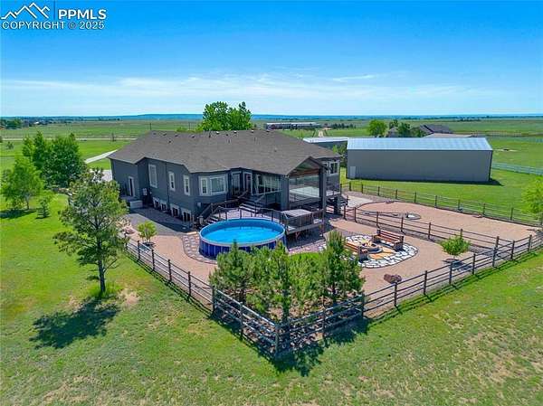Tucked away on 5 peaceful acres just off Hwy 24, this meticulously cared-for stucco ranch blends indoor luxury with true Colorado functionality-ideal for anyone wanting space to live, store, train, relax, and play. NEW ROOF! With 5 bedrooms, 3 bathrooms, and true main-level living, the open layout supports a wide range of lifestyles. The primary suite feels like a retreat with a spa-style bathroom, dual vanities, and an oversized walk-in shower. The finished lower level features high ceilings and generous living space-perfect for game nights, movie days, or hosting guests. The upgraded four-seasons sunroom is a standout: bright, climate-controlled with heaters and electric shades, and designed for year-round enjoyment. Step outside to the composite deck, pool, hot tub, and landscaped grounds for effortless indoor/outdoor living. Where this home truly shines is in its two exceptional outbuildings-ideal for RV/5th-wheel owners, sports enthusiasts, hobbyists, or those needing extra workspace: Steel Building (50x60): - Three 12x14 overhead doors (one with opener) - Finished 12x12 room - 220V + 30-amp outlets Perfect for RV storage, car collections, equipment, or workshop use. Sports Barn (30x70): - Full indoor sport court - Basketball hoop - Pellet stove (as-is) A rare setup for year-round training, fitness, or creative use. Additional upgrades include a 7,000KW whole-home generator, Jellyfish exterior lighting, electric shades, and a tranquil water feature. Every inch of this property is designed for space, recreation, storage, and ease. If you want a versatile lifestyle property with incredible amenities and a quiet, convenient location, this one checks all the boxes.