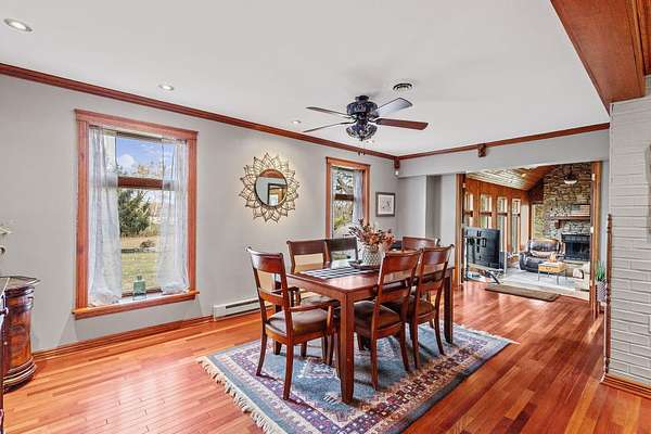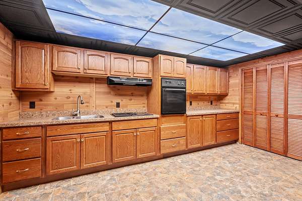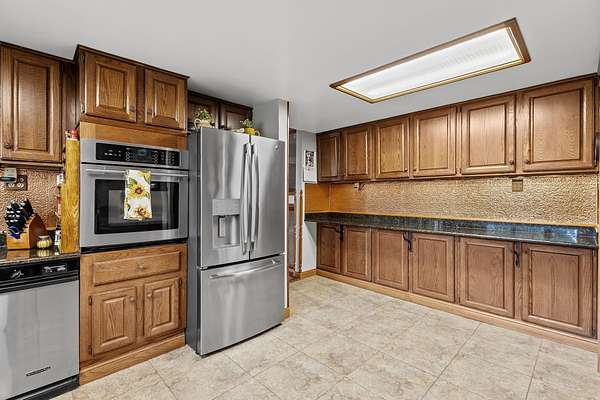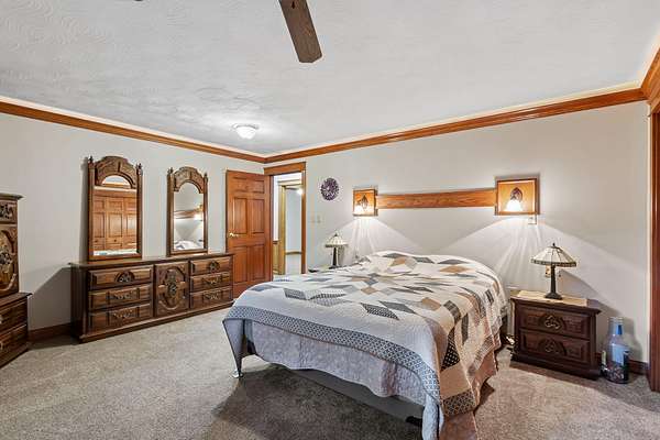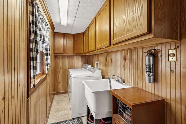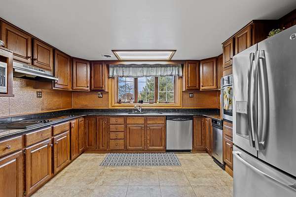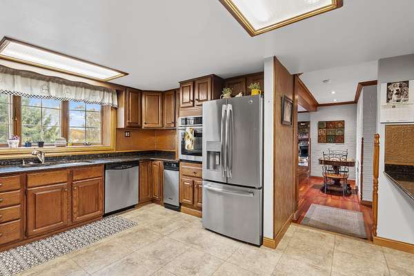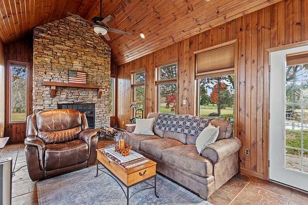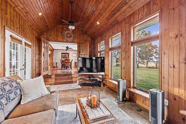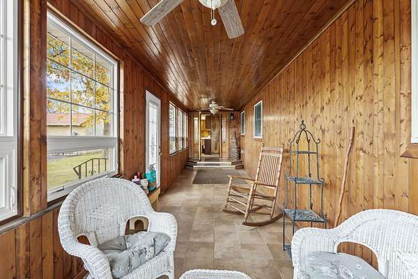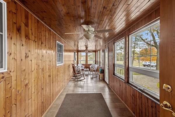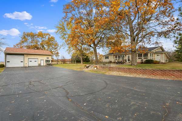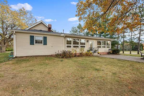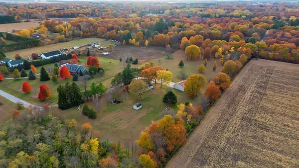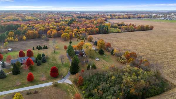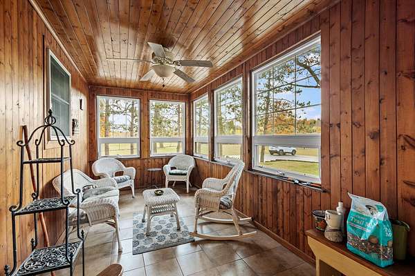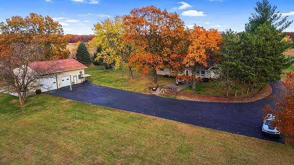 REDUCED BY 15K Just around the corner from Sandy Pines Golf course at the end of a dead end street is where you'll find this 6 acre estate! The sprawling 4 bedroom ranch is on a fully finished basement! As you enter from the paver lined patio that over looks your acreage, a full length enclosed porch/sunroom with heated ceramic floors welcomes you home. The kitchen boasts granite countertops & a copper backsplash while the dining room has hardwood flooring and tons of natural light. The rustic great room is a must see! With knotty pine walls, a vaulted ceiling, and a floor to ceiling stone woodburning fireplace.. this is a great spot to relax. There a numerous windows that overlook the 2 stage decorative ponds! There are 4 main floor bedrooms that are all nice sized and have custom solid oak trim, doors and accents! A custom tiled full bath with dual sinks & a dedicated laundry room round out this level. Need more space or a possible related living set up? Check out the finished basement. With approximately 1490 finished sqft, this area offers an enormous game room with a pool table, a 3/4 bath with a sauna and a 2nd full kitchen! Outside you'll find a paved drive with additional parking areas in front of the pole barn! This 34 x 40 barn serves as a garage currently. One bay is insulated with an A/C unit, electric heater and wood burner while the other half is cold storage. The acreage here is beautiful offering a great mix of spruce trees, maples and oaks as well apple trees, pear trees & grape vines! Other bonuses are the whole house generator and the brand new roof! Properties like this don't hit the market often... don't hesitate & miss out!