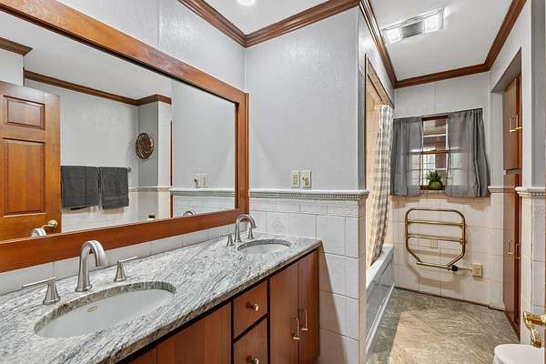 - Ceiling Fan(s), Crown Molding, Double Vanity, Entrance Foyer, Granite Counters, In-Law Floorplan, Vaulted Ceiling(s), Walk-In Closet(s)