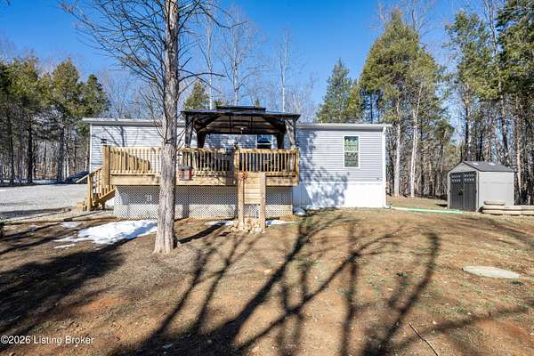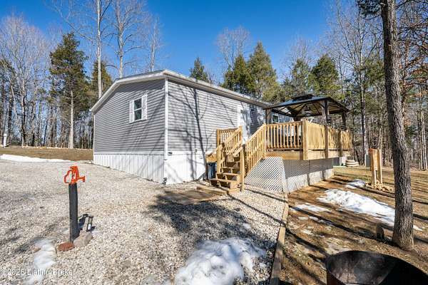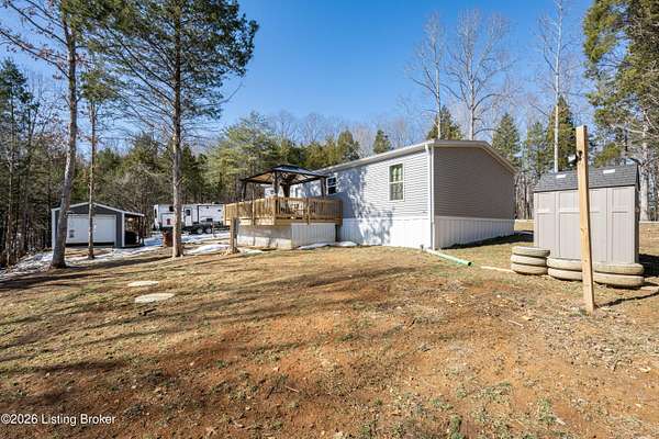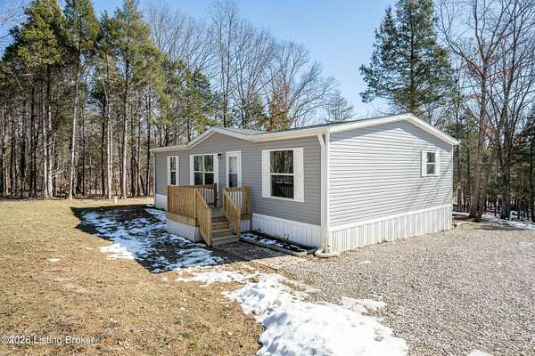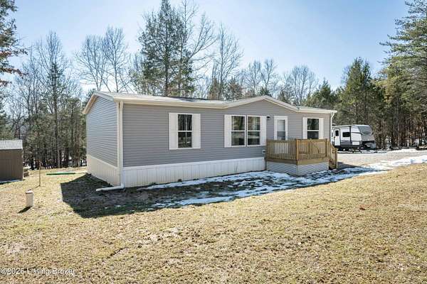 Welcome to peaceful country living in Hardinsburg, Indiana! This well-maintained 1 year old 3 bedroom, 2 full bath manufactured home sits on a beautiful 2.20-total acre property, offering space, privacy, and a quiet rural setting. The sale includes both the lot the home sits on PLUS the additional lot located directly across the street, about .5+- acre, providing added flexibility for recreation, gardening, or future possibilities. Inside, you'll find a comfortable and functional layout featuring a spacious living area, an open kitchen and dining area, and plenty of natural light throughout. The home offers a split-bedroom design with a private primary suite and two additional bedrooms ideal for guests, a home office, or hobbies. Step outside and enjoy the peaceful surroundings from the surroundings from the covered deck perfect for relaxing mornings or evening gatherings. The property also features a detached outbuilding/garage for extra storage or workshop space, along with a 50-amp electrical RV hookup, making it ideal for travelers, guests, or additional recreational use. If you've been searching for acreage, privacy, and a move-in ready home with room to spread out, this one is a must-see!