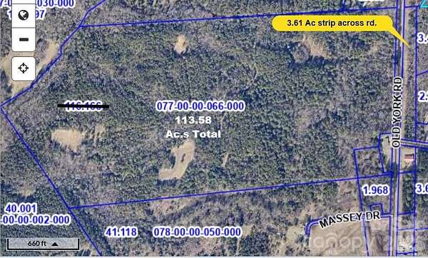 Est $5,507/mo113.58 Acres with 1,119 of road frontage on Old York Road south of Lowrys. Very well managed & maintained timber and recreational tract of land. 20+ year old planted pines thinned out about 9 years ago. This tract has been well managed for long term timber production, also well maintained for hunting by a small family member hunt club for the past 22 years.