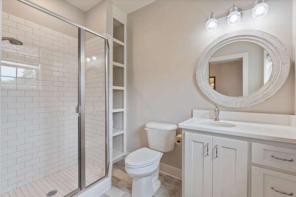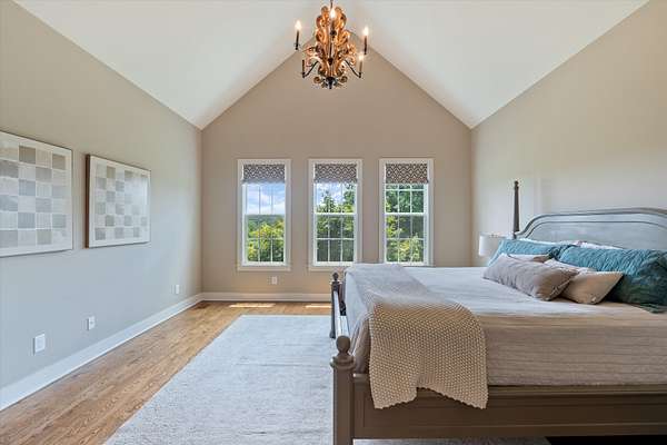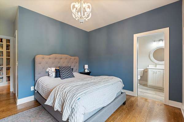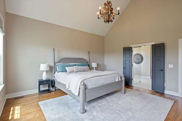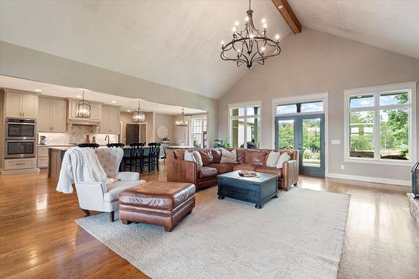 This custom-built estate offers 4,108 square feet of thoughtfully designed space, with 3,478 square feet on the main level for true one-level living. All bedrooms are conveniently located downstairs, each featuring a private en suite bath—creating comfort and privacy for both daily life and visiting guests. The open-concept layout flows effortlessly through the living, dining, and kitchen areas, highlighted by premium finishes, beautifully sand-and-finished hardwood floors, and a completely carpet-free design.