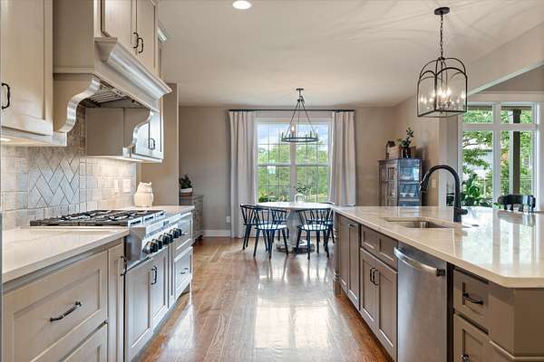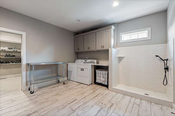 At the heart of the home, the kitchen blends beauty and function with a generous center island, gas cooktop, and a dedicated scullery complete with a second dishwasher and prep sink—perfect for hosting spring gatherings and holiday celebrations alike. A spacious laundry and mudroom with built-in storage and a pet spa adds thoughtful convenience, while the oversized three-car garage offers ample space for vehicles, hobbies, and storage.