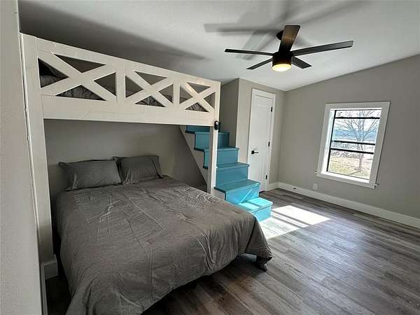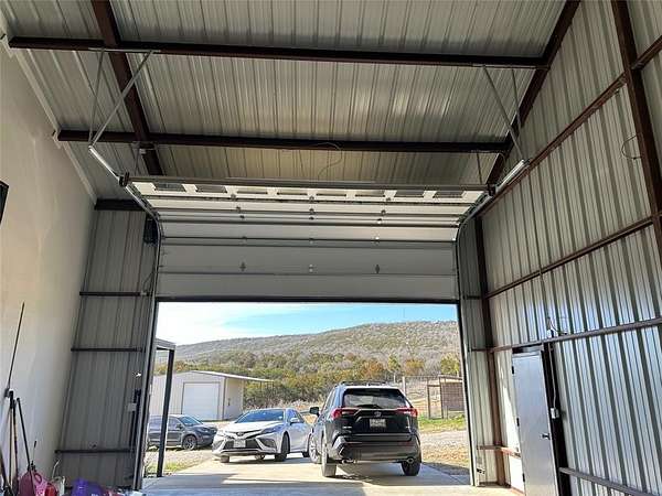 This active, successful, short term rental is ready to go as an income producing investment property, future home-site, or both! Build your dream home on this generously sized 1.89 acre lake front lot direct on the main body of Lake Palo Pinto! The existing 1000+ square foot Barndo comes fully furnished boasting two nicely sized bedrooms, one full bathroom, full size Washer Dryer room, and an oversized garage for your Jeep, RV, or Boat! This unique lot is situated atop a bluff affording some of the most breathtaking views of Lake Palo Pinto. There is a quaint, winding road that takes you down to an area which can accommodate a boat house and private dock. Existing boat house is a tear down or future renovation. Dock must be rebuilt. The possibilities are endless with this large, beautiful lake front property. Existing Barndo pulls in 3K+ per month in rental income.