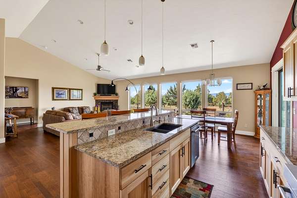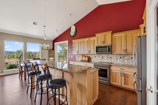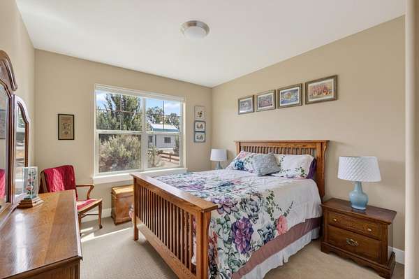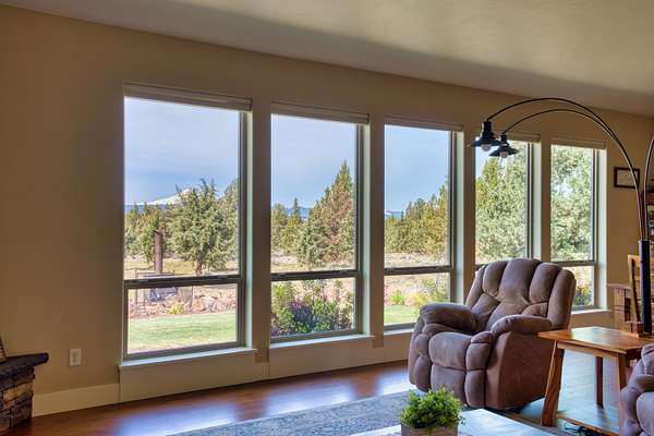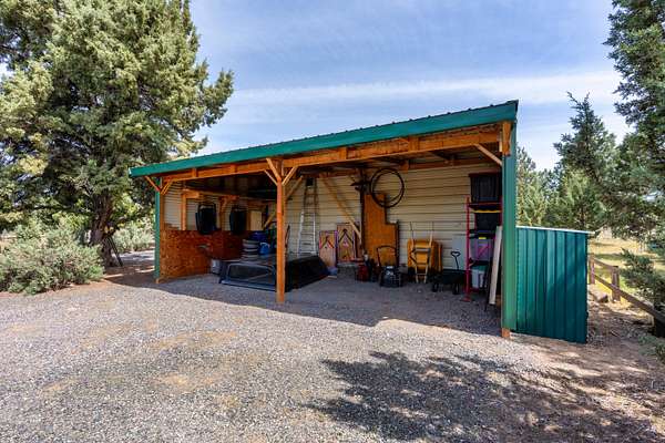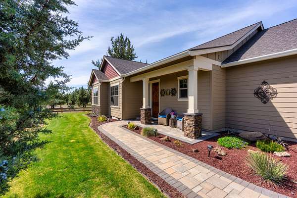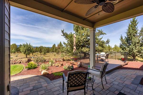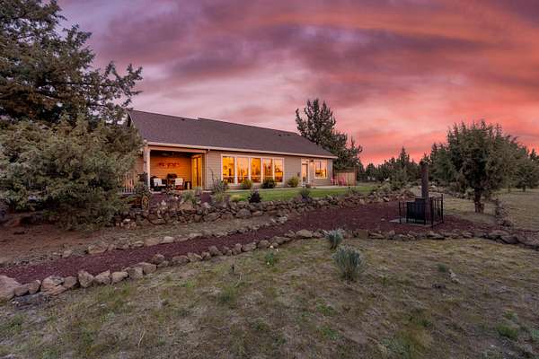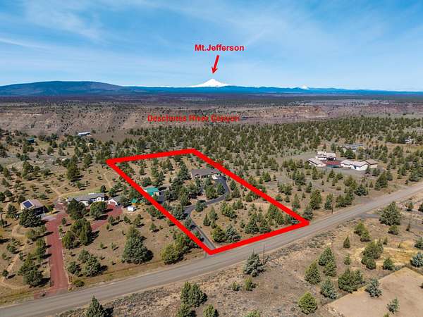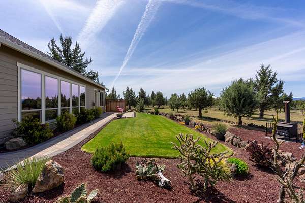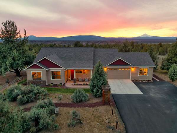 Relax and breath in the refreshing high desert air and majestic Cascade mountain views or head directly through the gateway off the back of the property onto public land above the Deschutes River from this peaceful, 2020 like-new 2121 sq ft single-level 3/2 on 4+ acres. Once home, open your front door to your wall of windows, mountain views and sanctuary. Granite kitchen counters with hickory cabinets, engineered hardwood flooring and triple-paned windows are just some of the builder upgrades that offer the warmth and quality on display throughout your home. In the backyard, you'll appreciate the paver patio and a new Trex deck to enjoy an inspiring sunset. Just right landscaping surrounds the home with limited maintenance necessary. A primary en-suite has dual vanities, bright tile shower and a sizable walk-in closet. Outbuildings include an insulated and heated shop with attached covered storage, an insulated and heated work shed and a hickory shed. The only thing missing is you!