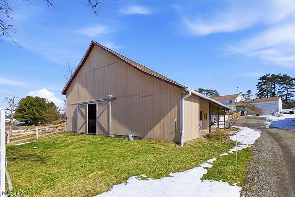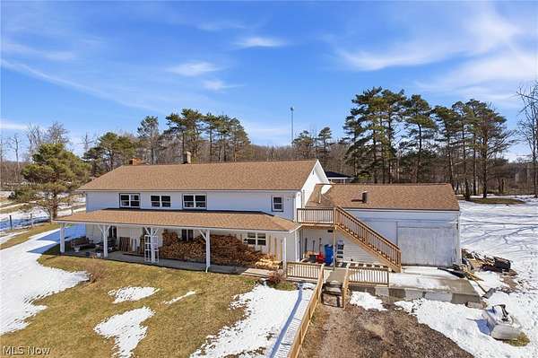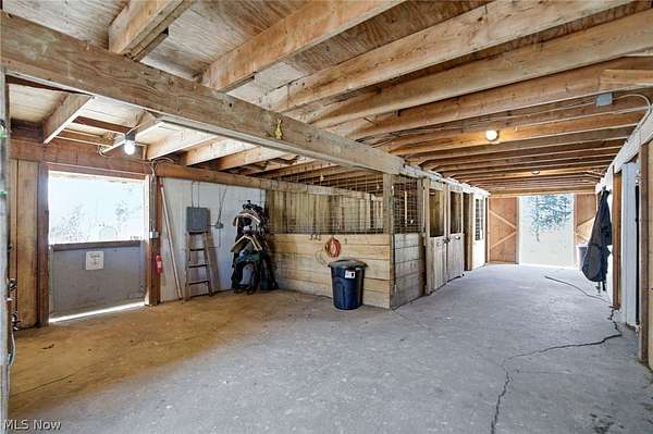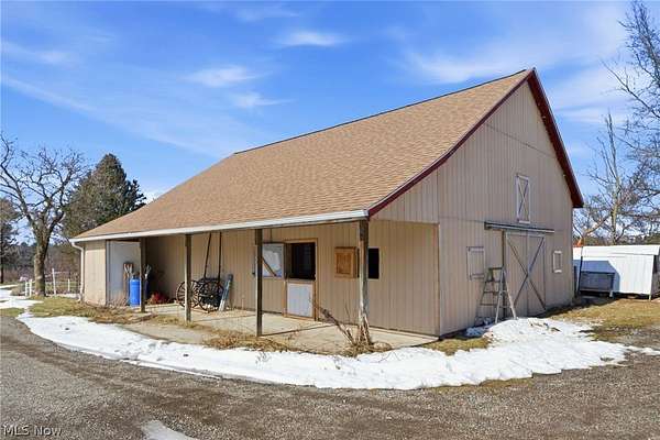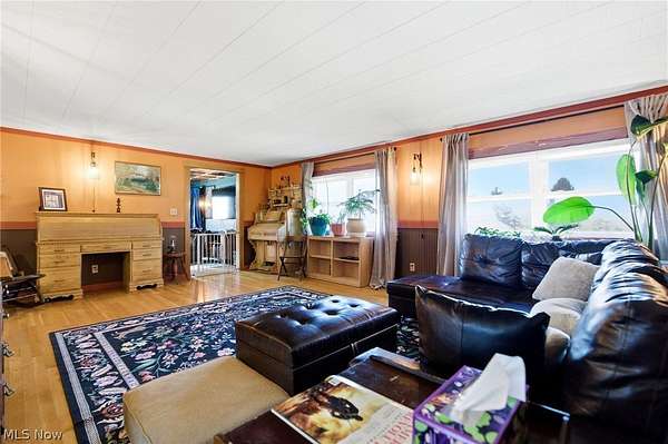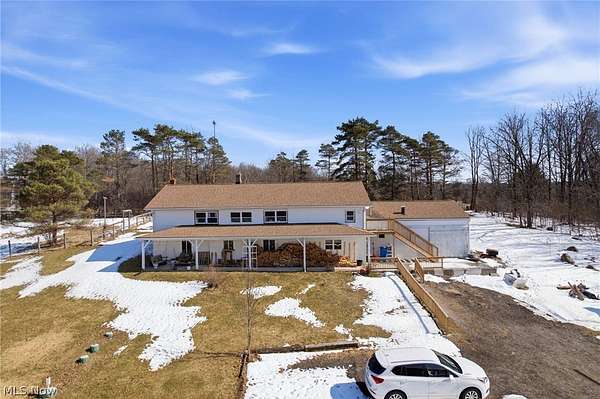 Looking for a 3-bed home in Huntsburg with acreage, horse facilities, and space for multi-generational living? 11361 Clay St offers 3,300 square feet on 5 acres, complete with a 6-stall barn, pond, multiple garages, and a full in-law suite designed for flexible country living. Welcome to this spacious 3,300 square foot property set on 5 scenic acres in Huntsburg, OH. Designed for both comfort and functionality, this home offers 3 bedrooms, 2 full baths, and a versatile layout ideal for everyday living and extended family arrangements. The main level features a huge kitchen that opens directly into the family room, creating a natural gathering space enhanced by hardwood floors. A second living room on the main floor provides flexibility for a home office, den, or additional lounge area. Two bedrooms are located on the main level, while the generous 17x16 primary bedroom offers impressive space and comfort. A standout feature is the full in-law suite, complete with its own kitchen, large living room, full bath, and separate bedroom, offering privacy and independence within the home. Outdoor amenities elevate this property into true country living. Enjoy a large covered front porch, a covered back deck overlooking the backyard, and an outdoor gazebo. Equestrian enthusiasts will appreciate the 5-stall horse barn with hay loft, fenced pastures, Apple Trees, Pear Trees, Peach Trees and a gorgeous pond, all set on 5 usable acres. For vehicles, equipment, or hobby space, the property includes an attached 30x30 garage plus a separate heated 3-car garage with an attached office, providing exceptional storage and workspace options. Recent updates include a NEW Kohler whole house generator, newer roof, hot water tank, and water softener. This 3-bed home in Huntsburg delivers acreage, barn space, garage capacity, and flexible living arrangements in one well-rounded property.
