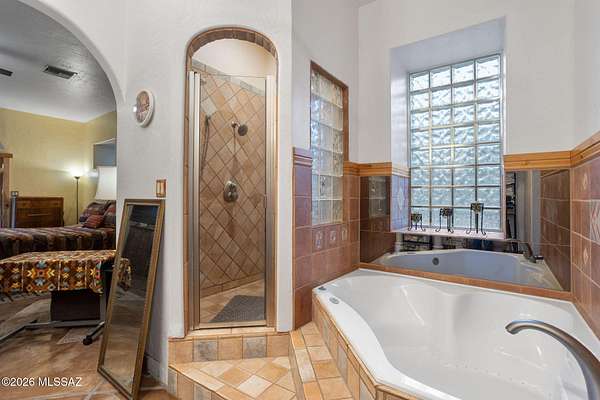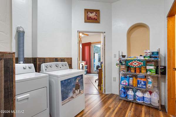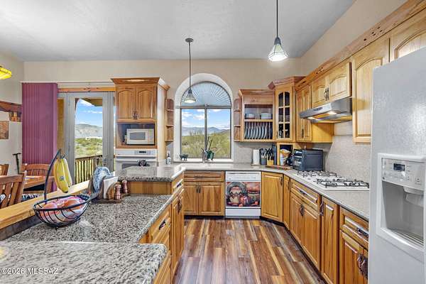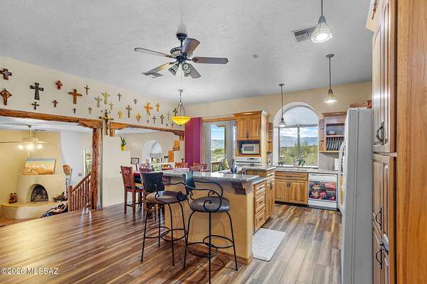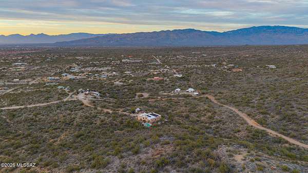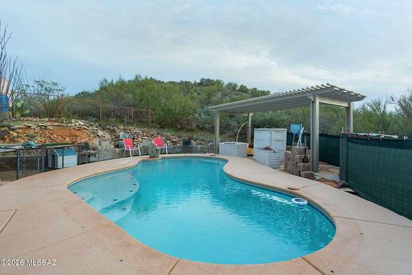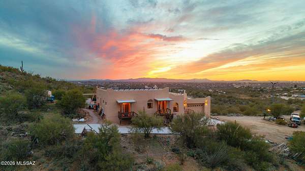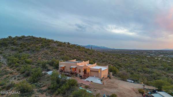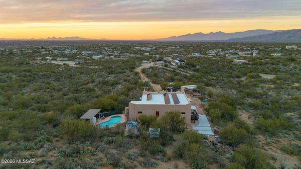 Situated on 6 acres with some of the best mountain views in Vail, this beautifully upgraded property offers privacy, sustainability, and true desert living. Enjoy a stunning pool supplied year-round by dedicated rain catcher tanks, plus a private well with holding tank. Leased solar panels significantly reduce electric costs throughout the year. Inside features newly installed vinyl plank flooring, a wood-burning Adobe Lite fireplace, and a well-appointed kitchen with Silestone counters and backsplash, granite island and countertops, Hickory cabinets with pull-out trays, and Moen fixtures with lifetime warranty. Surrounded by scenic hiking trails and wide-open space, this property delivers peaceful living with unforgettable views. Located in the best school district in the state!