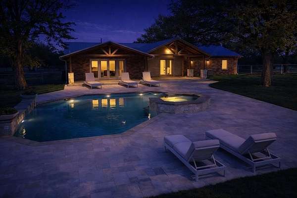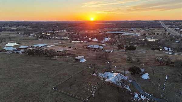 This stunning remodeled 3-bedroom, 2-bathroom custom home offers approximately 2,811 sq. ft. of thoughtfully designed living space, featuring rich wood floors throughout the bedrooms, hallways, living, dining, and kitchen. Nestled on 25 rolling acres just outside city limits, this property provides privacy, space, and breathtaking views. The home boasts an oversized 2-car attached garage, a newer pool and hot tub, and a fully fenced backyard--perfect for pets or children. Designed for both comfort and function, the property includes a 24' x 25' insulated workshop with a 24' x 25' lean-to, 24' x 50' hay storage and horse shelter in front pasture. The land is dotted with mature trees, offering shade and beauty, while the open pastures, wooded areas, and two stocked ponds make it ideal for ranching, hunting, or equestrian activities. A working windmill that sits by the pool, and a storm shelter provides peace of mind. With plenty of room for an arena and show barn, this incredible property offers endless possibilities for those looking for a rural retreat with all the modern amenities. Don't miss this rare opportunity to own a piece of Texas countryside with stunning views and unmatched potential! With Highway 82 frontage, ample acreage, and no city restrictions, this property is well suited for an equestrian estate, training facility, hobby ranch, or private country retreat in a highly desirable North Texas location. Opportunities like this are limited--schedule your private showing today to fully experience the land, views, and equestrian potential this property offers.