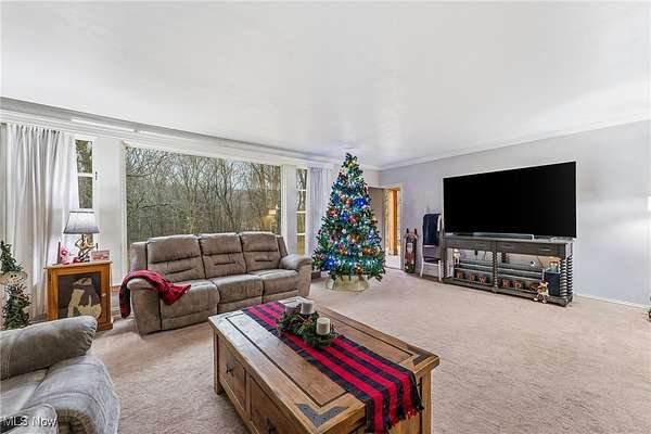 Deceptively spacious ranch home offering far more than meets the eye, situated on 3.34 acres on a quiet dead end street in a well maintained township neighborhood. This home features 3 bedrooms and 2.5 baths, with a flexible finished area in the basement ideal for a fourth bedroom, family room, or additional living space. Large picture windows throughout provide abundant natural light and showcase the tranquil backyard that borders a wooded property, offering privacy and a peaceful setting. The eat in kitchen includes an island with plenty of cabinetry and opens to a spacious dining room, perfect for gatherings and entertaining. The family room features a cozy wood-burning fireplace, with an additional fireplace located in the front living room. A large partially finished attic offers endless potential for a home office, craft room, or bonus space tailored to your needs. Additional highlights include an attached four car garage and a brand new outbuilding built in 2024 insulated & drywalled, featuring two large bays and a bar area ideal for entertaining, hobbies, or extra storage. The property also includes an equipment shed and a tool shed for gardening and outdoor needs. A rare opportunity combining space, privacy, and versatility in a desirable setting. Beaver Local & East Liverpool School buses pick up and drop off at the driveway.