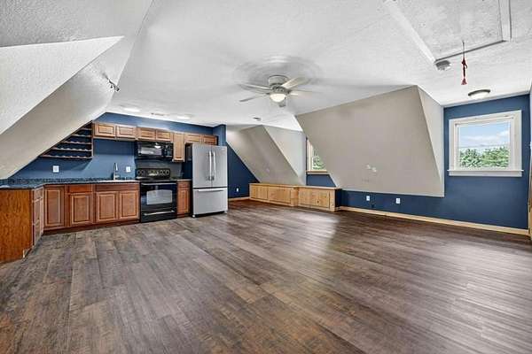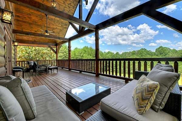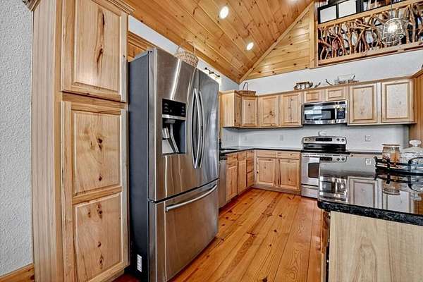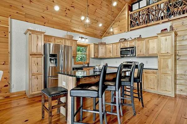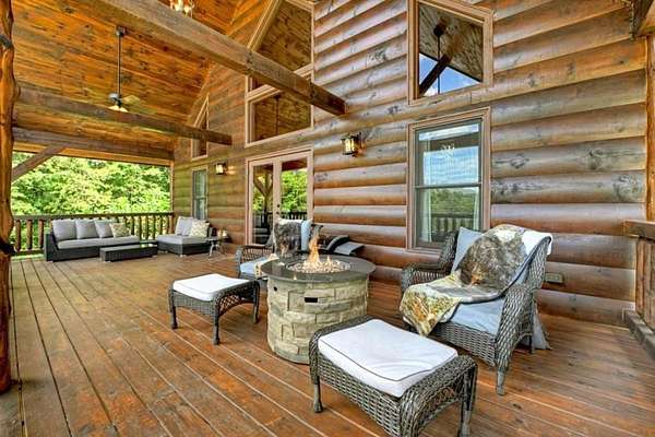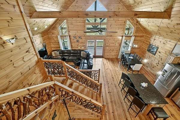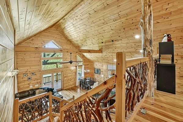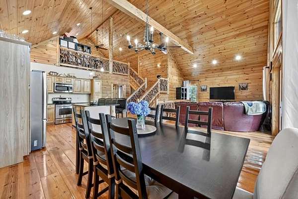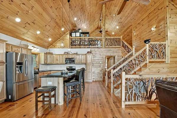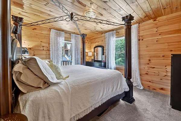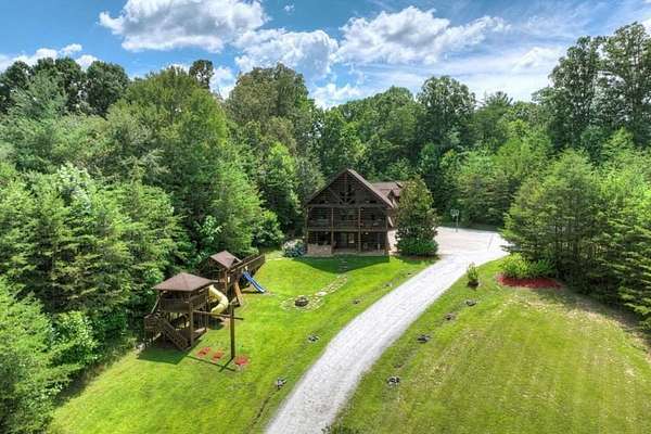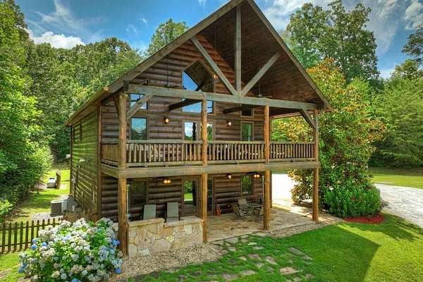 Welcome to your dream retreat nestled on 3.214 acres of flat, usable, and unrestricted land - perfect for expansion, privacy, or even a future home site. This unique property features two beautifully finished homes, ideal for multi-generational living, rental income, or guest accommodations. The main cabin-style home offers 2,560 sq. ft. of warm, inviting living space with 2 bedrooms and 2 full baths, plus a large upstairs loft that can be used as a third bedroom or game room. On the lower level, a private room with its own full bath and kitchenette makes the perfect master suite or entertainment space. Soaring ceilings, an open-concept design, and mountain laurel accents throughout create the ultimate cozy cabin vibe. The kitchen offers ample storage and is well-equipped for hosting gatherings. Need space for your hobbies or toys? You'll love the oversized finished 2-car garage included with the main home. The second home is a fully independent 2BR/2BA apartment with modern finishes, a full kitchen, and 1,152 sq. ft. of living space, located above its own oversized 2-car garage - perfect for guests, extended family, or rental income. Outdoor lovers and boaters will appreciate being just one mile from two public boat ramps on the pristine Lake Blue Ridge - enjoy lake life without the waterfront price tag! And with downtown Blue Ridge only 5 minutes away, you'll have quick access to shopping, dining, and entertainment, as well as minutes to beautiful wineries and fabulous restaurants, all the while enjoying the peace and privacy of your own estate. Don't miss this exceptional opportunity to own a rare dual-home property in one of North Georgia's most sought-after locations!