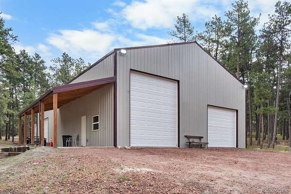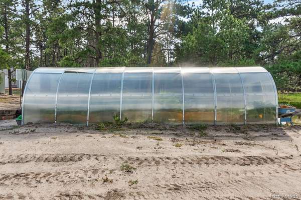 Built in 2022, this stunning ranch with a walkout basement sits on 35 treed acres just outside of Kiowa. Modern construction paired with unmatched land and amenities makes this property truly one-of-a-kind. Inside, the home features an open-concept floor plan with abundant natural light, spacious living areas, and a seamless flow from the kitchen to the dining and family spaces. High ceilings and modern finishes make every room feel bright and welcoming.The spacious walkout basement is set up as a full mother-in-law suite, providing a private living area for guests, or potential rental income. With plenty of land, there’s also room to build another residence, if desired. This property is built for both lifestyle and versatility. A massive 60 x 40 concrete shop includes electricity and water, already tied into septic and ready for a bathroom install—ideal for a business, hobby shop, or serious workshop. A detached oversized three-car garage gives you even more parking and storage space. You’ll also find a fully established greenhouse for year-round growing and two additional outbuildings ready for livestock, storage, or customization. Outdoors, the property is quiet and private with mature trees and rolling terrain. Wildlife is a regular sight, and the wraparound deck is the perfect spot to enjoy sunrises, sunsets, and the peaceful Colorado landscape. This is more than a home—it’s a retreat, a business opportunity, and a lifestyle all in one. With modern construction, space to expand, and 35 acres to call your own, this property is a rare find in Kiowa.