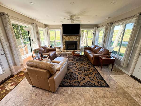 Welcome to a truly one-of-a-kind property in Guernsey County, Ohio, offering a turn-key opportunity for farming, chestnut production, recreation/hunting, and country living! This exceptional +/- 63 acre estate combines a fully remodeled home, modern farm infrastructure, and an established chestnut orchard with tremendous commercial potential. The 1,544 sq. ft. single level home has been completely rebuilt from the studs up. Nothing was left untouched--plumbing, piping, wiring, drywall, flooring, insulation, ductwork, HVAC, windows, siding, roof, cabinetry, fixtures, vanities, appliances, and even the doors are all brand new. Featuring three bedrooms, two full baths, a stunning rock fireplace, gorgeous natural lighting, and a wrap-around porch built in 2023, this home is the perfect blend of comfort and charm. The porch is positioned to capture breathtaking sunsets over the rolling hills. The property includes impressive outbuildings to support both farm and recreational uses. A spacious 50' x 80' barn with new siding, windows, roof, concrete floor and pad, plus electric, is ideal for equipment or livestock. A 30' x 40' bank barn with three large garage doors offers the perfect setup for boat storage, canning or whatever you desire. The bank barn has two levels that can potentially be used for both storage and also partly converted to living quarters. The bank barn has electricity and water; also providing space for a potential AirBnb. There's also a conveniently located small stock building with new roof, windows, siding, and doors, along with a large attached garage. Agriculture and wildlife blend beautifully here, with +/- 1,450 chestnut trees planted since 2020, roughly 15-20% are already bearing nuts, and the orchard floor is seeded in clover and alfalfa. An additional +/- 275 trees--including oaks, pecans, persimmon, hazelnut, coralberry, and American plum--were planted in spring 2025, further enhancing the long-term productivity and habitat value of the land. The commercial chestnut production and wildlife management opportunities are truly unlimited here! The property layout includes a +/- 4-5 acre pasture, a one-acre food plot, and +/- 36 acres of wooded land with oaks, excellent cover, and established trails. This area is well known for trophy whitetail deer and turkey, and photos showcase abundant wildlife right around the barns and home. The fields roll gently, the woods are alive with game, and the turkeys move gracefully between the timber and open ground. To top it off, the property is just +/- 5 minutes from Salt Fork State Park, providing additional opportunities for hunting, fishing, boating, and outdoor recreation. Deer and turkey are abundant on this property, creating excellent hunting opportunities right out your back door. With numerous locations for additional food plots, diverse habitat, and an elevated blind set in an ideal spot, the land is perfectly tailored for wildlife. It's not uncommon to see deer and turkey wandering through the front yard, a testament to the thriving population. This area has a long-standing reputation for producing record-book whitetails, making it a prime destination for serious hunters! The property is +/- 20 minutes from Cambridge, +/- 40 minutes to New Philadelphia, +/- 45 minutes Zanesville, and +/- 50 minutes to Canton, making it very convenient for full time living, a getaway, or an ongoing farming operation. This is more than a farm--it's a lifestyle, an investment, and a legacy property ready for its next chapter. Property is in CAUV and seller's mineral, oil and gas rights do not convey. Sellers are requiring proof of funds or pre-approval letter for showings and all showings require 24 hours notice. Agents must be present for all showings. All showings are by appointment only. If you have any questions or are interested in a private showing, please contact Brian Whitt at (937) 545-7764 or Josh Grant at (330) 341-0997 .