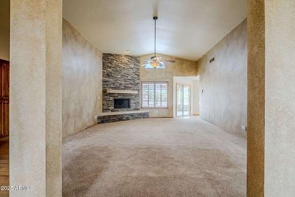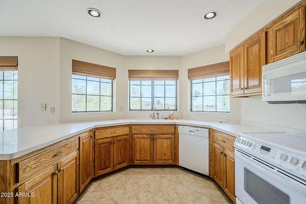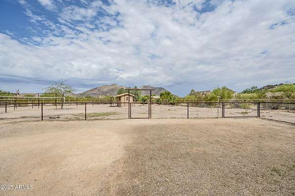 Discover luxury country living at this exquisite home nestled near North Mountain. This property offers 2.67 lush acres with a home designed by esteemed builder Dan Harris, This home boasts a quality construction, from the grand vaulted ceilings to the custom stone fireplace that serves as the living room's focal point. The layout includes three spacious bedrooms, with the large primary bedroom featuring a garden tub, separate shower, and a generously sized walk-in closet, ensuring private luxury. The formal dining room is perfect for entertaining, seamlessly connecting to a bright kitchen equipped with a breakfast bar, pantry, and all the necessary appliances. Adjacent to the kitchen, a cozy breakfast nook offers views of the expansive covered patio. Outdoor you will find a 3-stall barn with turnouts and a tack room. You will have plenty of trails to ride at North Mountain and the surrounding trust land. Additionally, the property hosts a detached two-car garage and an RV shade, providing ample space for vehicles or outdoor gear. Don't miss out on this hard to find property in a high end location.