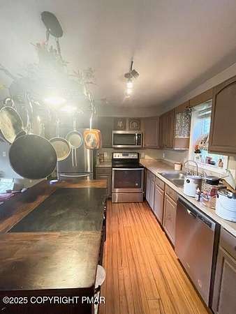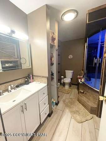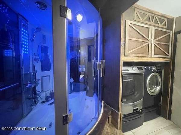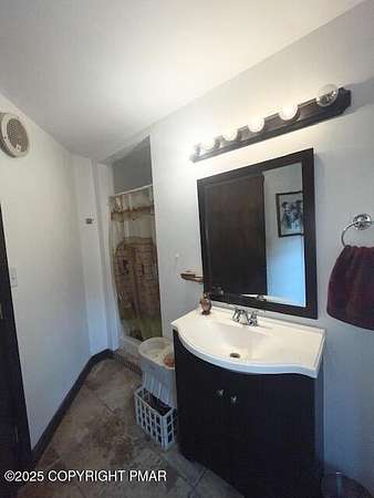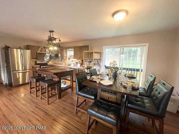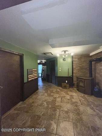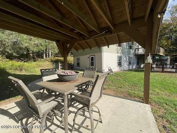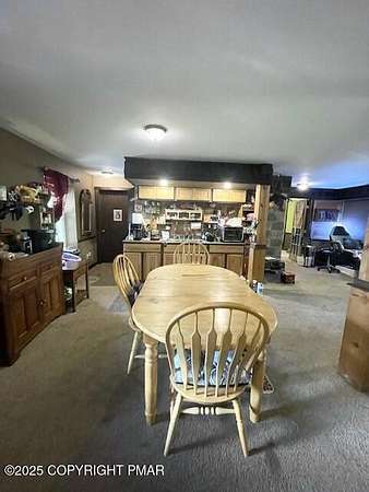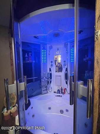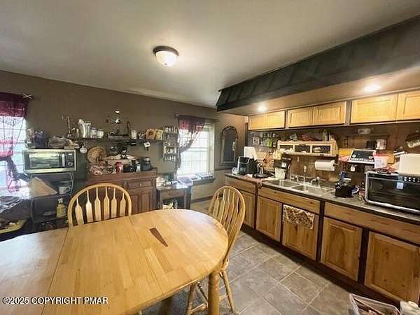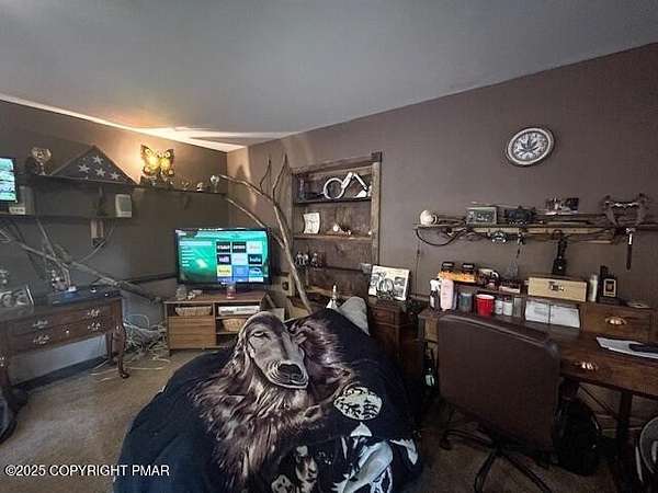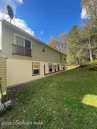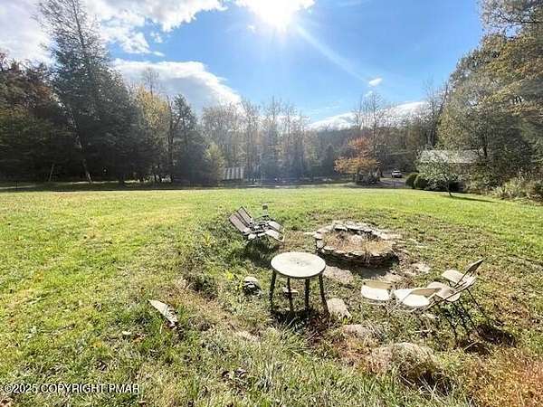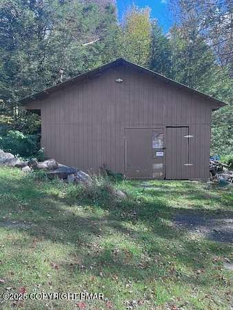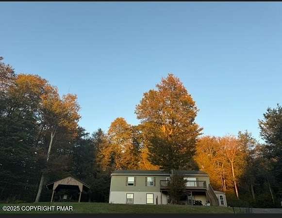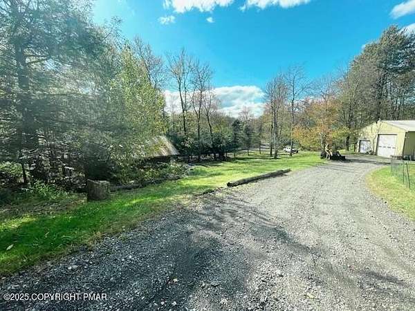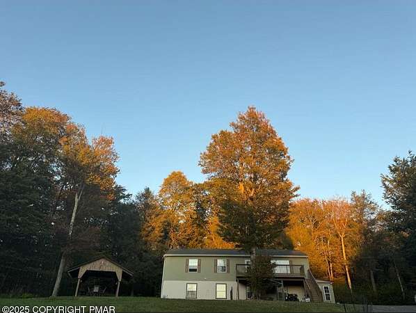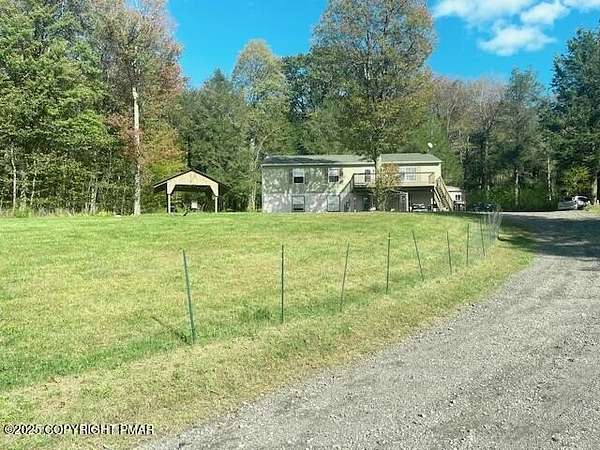 Discover an extraordinary property in the heart of the Poconos, spanning 3.46 acres beside Turkey Knoll Summit, a private hunting preserve, and expansive state game lands. This spacious home features 3 inviting bedrooms with 2 additional finishd rooms that can be used as bedrooms, as well 3 well-designed bathrooms, perfect for families or those craving ample living space. Key features include an oversized 2-car garage with an exhaust fan, ideal for DIY projects or car enthusiasts, and an outbuilding for a workshop or extra storage. A secure tractor-trailer container, once a woodshop, adds versatile space. Inside, custom live-edge accents adorn the front porch and a unique sunken shelf in the living room. The primary bedroom is a retreat, with a spa-like ensuite boasting a jacuzzi tub, modern fixtures, and a large walk-in closet. The upper-level kitchen offers style and functionality, while a downstairs kitchenette suits entertaining or an in-law suite. Outside, a fenced yard includes a charming pavilion and seating area, perfect for gatherings. A hillside fire pit sets the scene for stargazing, and a spacious second-floor deck provides room for relaxation or a hot tub. Situated on a tranquil dead-end street, the property ensures peace and privacy. Nearby attractions, just minutes away, include Tobyhanna State Park for outdoor fun, Kalahari Resorts for family entertainment, Mount Airy Lodge and Casino for nightlife, and Camelback Mountain for skiing and adventure. Wildlife abounds with bears, deer, foxes, turkeys, and squirrels, all set against stunning landscapes and vibrant sunsets. This serene retreat seamlessly blends comfort with nature's beauty, making it an ideal future home. Don't miss the chance to explore this unique oasis-envision the possibilities today!