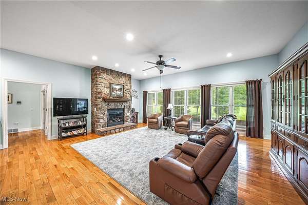 Simple Country Elegance! Quality built & very well cared for this one owner ranch home offers you gracious living throughout. This Grand home is the personification of a Quality Build perfectly placed on 1.9 acres located in The Prestigious Rolling Meadows Subdivision of Hiram Twp. Garrettsville. Bring on the friends & family because entertaining in this Cooks Kitchen is going to be a breeze! Huge adjoining breakfast room is enveloped in wonderful natural light. You'll be able to handle any large & hungry crowd with ease. Open Concept Great Room boasts a stone gas fireplace & has ample entertaining space. Welcoming Entry Foyer! Spacious Formal Dining Room. All the bedrooms are Nicely sized. Master Suite has access to Lanai in back yard. Large Laundry Room boasting custom Hickory Cabinets can handle your storage needs. Mudroom with huge closet for additional storage is just off the 3+ car garage. And, there is additional garage, with attic storage space in the carriage house. Both Front porch & back Lanai have new nature stone flooring surfaces- It's Just beautiful! Awesome Real Hardwood Floors throughout much of the home! You're not going to believe how huge the basement is until you walk down the staircase and see that...it goes forever! So many possibilities! The basement family room has a gas stove that is thermostat monitored & controlled. There is also an addition room currently used as an office & several huge storage closets in this massive finished basement. The theater equipment will stay and is nicely placed in the basement as well. Many Updates! You really are not going to want to miss out on this one!!! SO...What are you waiting for?!?! ~~CALL DARLENE OR YOUR FAVORITE REALTOR TODAY FOR YOUR PRIVATE SHOWING! Pre-approval Letter or Verification of Funds are required prior to granting a showing appointment.