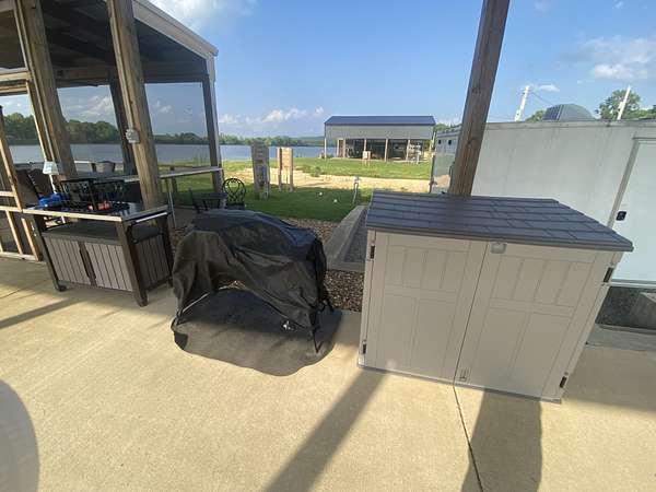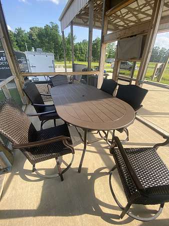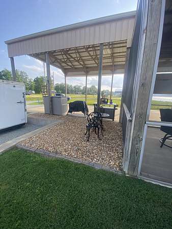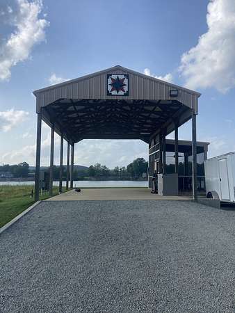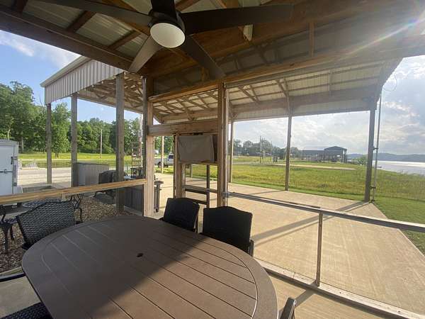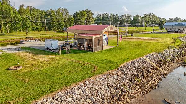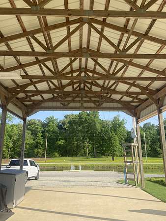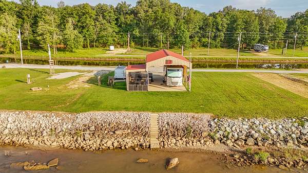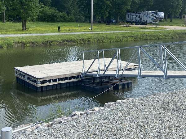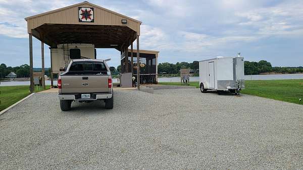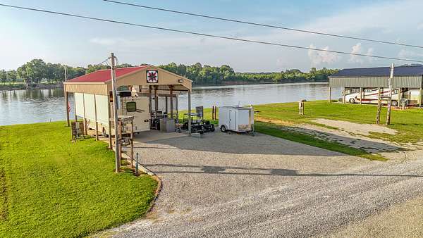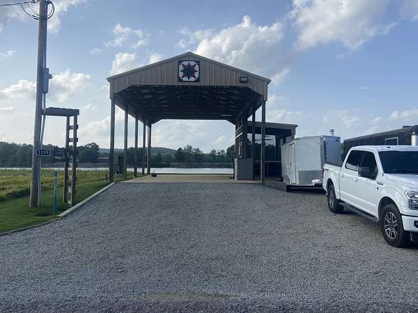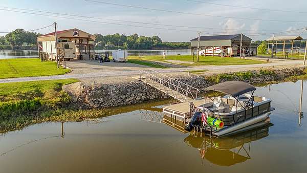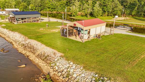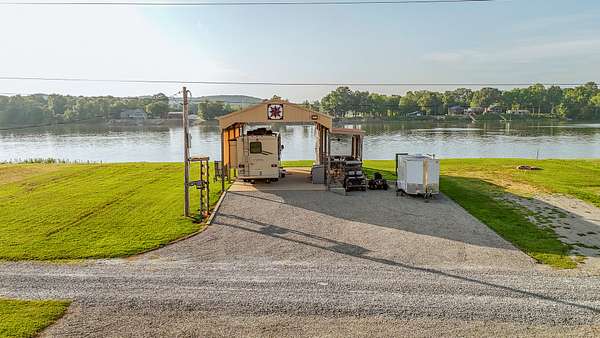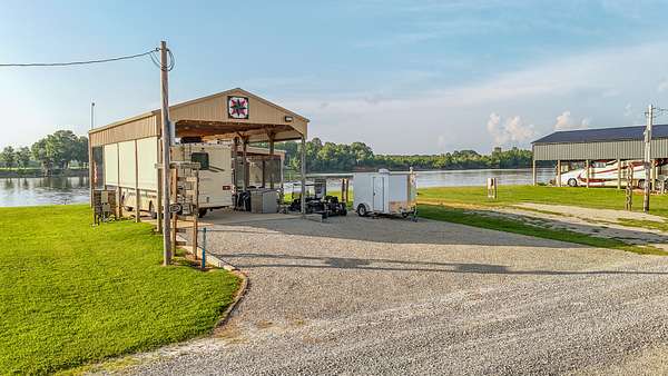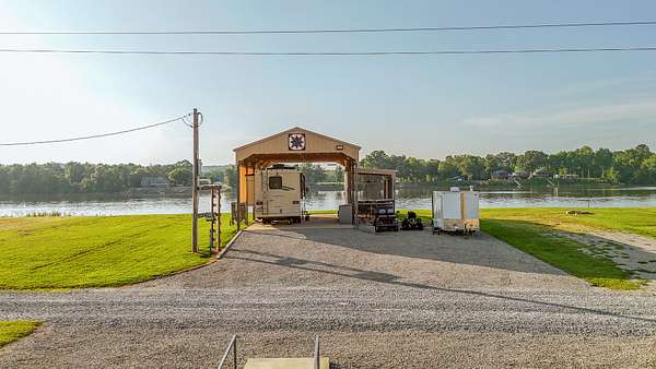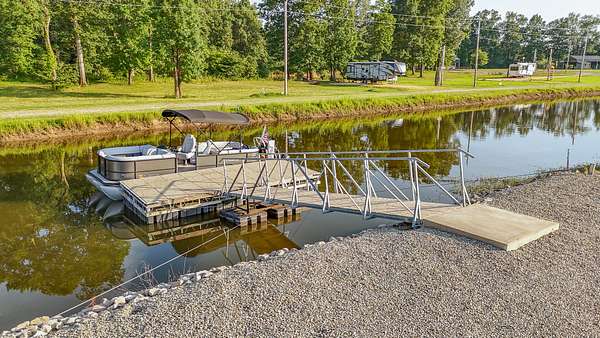 White Oak Landing lot with boat dock! Lot 138. The canopy cover is 20X40. Plenty of height for any RV/5th wheel. A very nice screen room (10X15) has been added with tv, and beautiful table and chairs. Almost all furniture stays including a small refrigerator, ice maker, and prep table, storage box. 20 ft enclosed trailer included. And of course a very nice boat dock in the cove! The bank has been rocked. Lots of gravel, and concrete give the lot a very nice, well kept, appearance. Bemuda sod outlines the lot. Lights around the perimeter for nighttime. 50/30/20amp service on each side of the lot. Two hookups for sewer. Nice space for a buddy to hook up beside the cover. Lot has city water. High speed internet available. 2 marinas and a Jack Nicklaus golf course nearby. Owners pay $564/yr for maintenance of gate and common areas. No HOA. There is a community boat ramp. Owners also have extra 20X40 area available for storage. This lot has it all! Call today to schedule a showing!