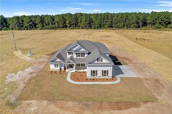 Welcome home to the "Justin" floorplan by JM Allen Homes featuring 5-beds, 3-baths, 3 car garage, and 3109 sq ft of living space. This home sits on over 6 acres of beautiful, unrestricted land in Ludowici, Georgia. The builder is offering up to $15k towards closing costs or interest rate buydowns! This thoughtfully designed home features an open-concept layout with a welcoming foyer that has an open staircase overlooking the living room, dining room, and kitchen. The home has both a breakfast nook and a formal dining room. The spacious kitchen boasts quartz countertops, stainless steel appliances, and custom cabinetry. The inviting living area offers a cozy electric fireplace and abundant natural light with views of your private acreage. The primary suite is a true retreat with a spa-like bathroom, large-tiled shower, soaker tub, and two walk-in closets. There is a second bedroom and bathroom on the main level, and then three additional bedrooms and a loft upstairs that offers plenty of space for family or guests. The spacious laundry room offers functionality and storage space and even includes a doggie shower! Located just a short commute to Fort Stewart, Brunswick, and Savannah, this property offers the best of both worlds--peaceful rural living with convenient access to nearby cities. Enjoy the freedom of country living with no HOA--bring your animals, build a shop, or create your dream homestead. Don't miss this opportunity to own a beautiful new construction home with modern conveniences and room to roam!