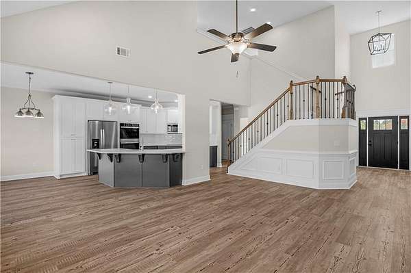 - Ceiling Fans, Ceilings Above 9 ft., Formal Dining, Foyer, Garagedooropener, Newly Painted, Split Bedrooms