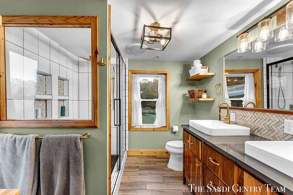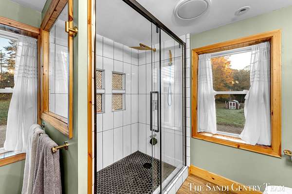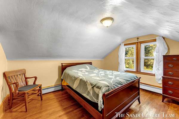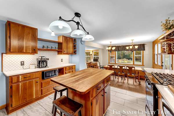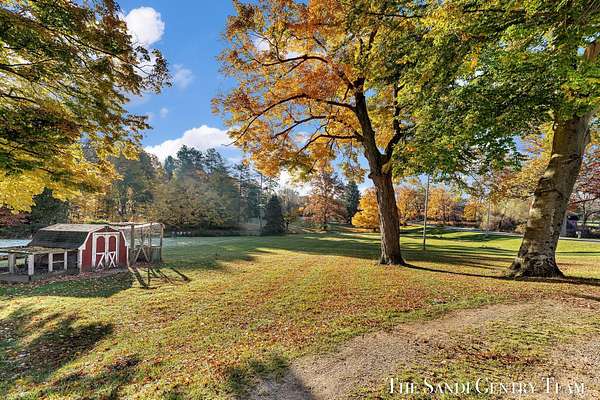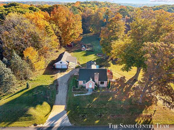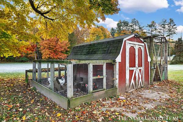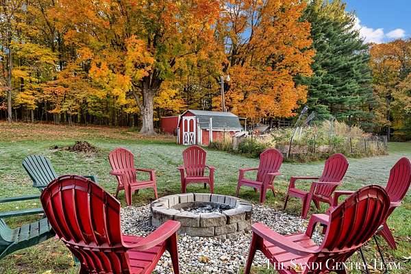 Charming Brick Home on a Peaceful, Tree-Lined 4.5-Acre Setting Welcome to this beautifully maintained 4-bedroom, 2.5-bath home offering over 2,100 sq ft of living space with the perfect blend of timeless character and modern comfort. Nestled on just over 4.5 scenic acres surrounded by mature trees and nature, this property offers the tranquility of country living while remaining close to local amenities. Step inside to a bright, spacious living room featuring original hardwood floors and a brick wood-burning fireplace. The updated kitchen is both stylish and functional, with quartz countertops, a large island with seating, custom wood cabinetry, a gas range, and new stainless-steel appliances. The adjoining dining area, surrounded by windows, provides stunning views of the property. The main floor primary suite includes sliding barn doors, a walk-in closet, and a private bath with a double-sink vanity and glass-tiled shower. A remodeled full bath and convenient half bath complete the main level. Upstairs, you'll find 3 additional bedrooms with hardwood floors, a half bath, and generous storage space. The lower level offers a clean, dry area ready for finishing, complete with a laundry area, cellar sink, and ample storage. Enjoy in-floor heat via boiler and a comfortable layout for everyday living. Updated HVAC and plaster walls (2018) provide modern comfort and peace of mind, with a new electrical panel installed in 2025. Step outside to enjoy 4.5 acres of scenic, usable land surrounded by mature trees and open space perfect for gardening, outdoor recreation, or simply relaxing in nature. The property features a new deck, fire pit, garden area, tree fort, and a peaceful creek that adds to the tranquil setting. 2 red barn-style storage sheds, one with covered space, provide plenty of room for lawn equipment, tools, or recreational gear. There's also a functional poultry coop ready for hobby farming or small livestock. Located in a quiet, tree-lined area, this property offers both privacy and space to enjoy country living at its best.