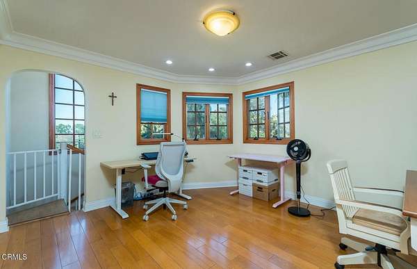 - Beamed Ceilings, Breakfast Bar, Crown Molding, High Ceilings, Open Floorplan, Pantry, Recessed Lighting, Walk-In Closet(s)