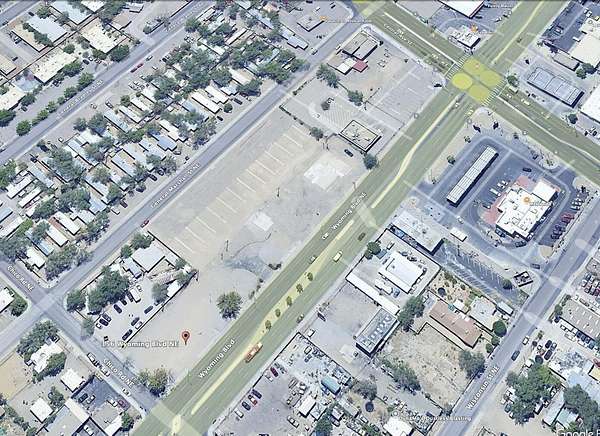 From Central and Wyoming, go North on the first block on the East side of Wyoming. 114-156 Wyoming NE. See Sign, Frontage of Property begins about 250 FT from Central all the way to the corner of Chico Street. Property is 2.35+/- Acre Property fronts Wyoming, 114-156 Wyoming Blvd NE. 156 Wyoming is on the NE corner of Wyoming Blvd and Chico and Extends East of Wyoming to 125 General Marshall St NE.