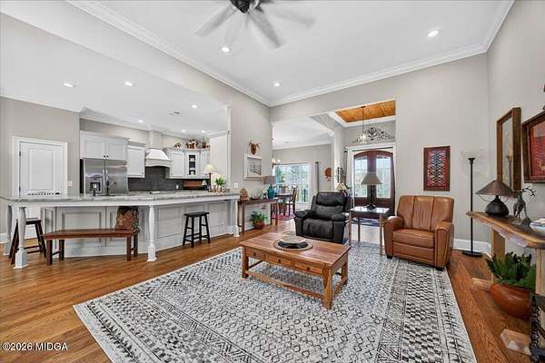 Welcome to Southern Waters in Monroe County--a hidden gem offering a lifestyle unlike any other! This one-of-a-kind community is centered around a private lake and features incredible amenities including street lights, a shared dock, party pavilion, swimming area, scenic trails, open pastures, creeks, and two stocked ponds--perfect for those who love the outdoors and lake living. This home is better than brand new--every upgrade and addition has already been thoughtfully completed such as an added whole house generator, an apartment above the garage plus more, AND the property is in pristine condition! Situated on 2.94 acres, this custom-built home offers 4 bedrooms, 3.5 bathrooms in the main house, along with an additional apartment above the detached garage featuring 3 additional rooms and a bathroom - and an abundance of space both inside and out. Designed with flexibility in mind, you'll find two additional flex rooms in the house ideal for a home office, playroom, or hobby space, along with ample storage throughout. What truly sets this property apart is the detached garage featuring a shop or office area, plus a fully equipped above-garage apartment with 3 bedrooms and 1 bathroom--perfect for guests, a private in-law suite, or older children needing their own space. With its rare combination of privacy, space, and top-tier amenities, this property offers the perfect blend of peaceful living and everyday convenience. This home truly has it all--don't miss your opportunity to experience life at Southern Waters!