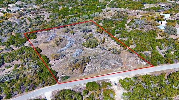 This partially cleared 5.05-acre lot in the exclusive Bear Springs Ranch neighborhood, just outside of San Antonio, Texas city limits offers the perfect canvas to build your dream home. Surrounded by stunning rolling Hill Country views, this peaceful retreat provides both privacy and convenience, with San Antonio only a short drive away. This paved county road on a cul-de-sac lot, offers minimal drive thru traffic creating a private and serene homesite. With its natural beauty this property offers a rare opportunity to embrace country living while still being close to city amenities. With minimal restrictions and no HOA, there are endless possibilities! Red lines are approximate and only to give visual representation. NO HOA!!! Less than 5 miles to the new HEB off 211 & Culebra set to be completed in October 2025!