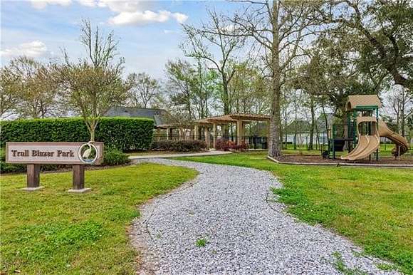 Est $849/moLarge cleared lot, elevated 3 feet, with limestone drive ready for you to build your dream home in The Parks of Plaquemines. A beautiful gated neighborhood with a community pool, play area, sports court and walking trail. This lot backs on to the walking trail and is steps away from the basketball, tennis and pickleball courts.