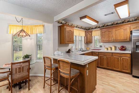 YOUR HEART IS HERE - Envision returning to the Harts Chapel community, where a custom-built 2-story home awaits on 42 rolling acres, complete with pastureland, a shimmering private 2-acre stocked lake, an outdoor tiled patio, mature landscaping, an oversized two-car garage, a whole-home generator, two propane tanks, and a separate workshop and shed. The upstairs primary suite features a wood-burning fireplace, ample closets, a separate shower, and a jetted tub ideal for unwinding. An additional upstairs bedroom comes with plumbing, alongside an office/bonus sitting room, and a balcony offering serene views of the pastureland. Step beyond the porcelain-tiled foyer to discover a family living area with a gas fireplace, a built-in wet bar, a formal dining room, and a kitchen & breakfast nook overlooking the picturesque lake. The first floor also houses two bedrooms, each with double closets, and two full bathrooms. Descend the stairs to a finished basement that boasts spacious media/game