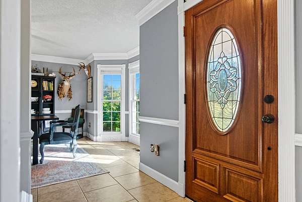 This delightful property features 4 bedrooms, 2 full bathrooms, and 3 half bathrooms, all nestled on a spacious 4.59 acre lot complete with an in ground pool and a wired workshop. As you step through the front door, you are greeted by the Great Room, featuring stunning Hickory flooring, a cozy gas log fireplace, and elegant decorative wood molding. Adjacent to the family room is a dedicated study with a half bath, offering convenient access to the pool area perfect for entertaining. The kitchen features oak cabinetry, granite countertops accented by a tumbled marble backsplash, and a built-in wine rack. The kitchen also includes an oversized dining area and a laundry room with a pantry for added functionality. The primary bedroom is generously sized and boasts Hickory floors along with an extra large walk-in closet. The updated primary bathroom features a luxurious jetted tub, double vanity, and a separate tiled shower. Upstairs, you'll find two well-appointed bedrooms that share a Jack and Jill bath, along with a versatile fourth bedroom or bonus room. Just off the kitchen, a screened breezeway leads to the garage, adding convenience to your daily routine. Additionally, there is a bonus room or fifth bedroom with a half bath located above the garage. Step outside to enjoy the rear covered patio with a deck, perfect for relaxation, along with the inground pool and a 22x25 wired workshop that includes its own half bathroom. This property blends modern comforts with outdoor living, making it an ideal retreat for families! Call today to schedule your showing!