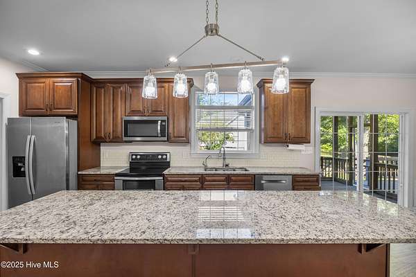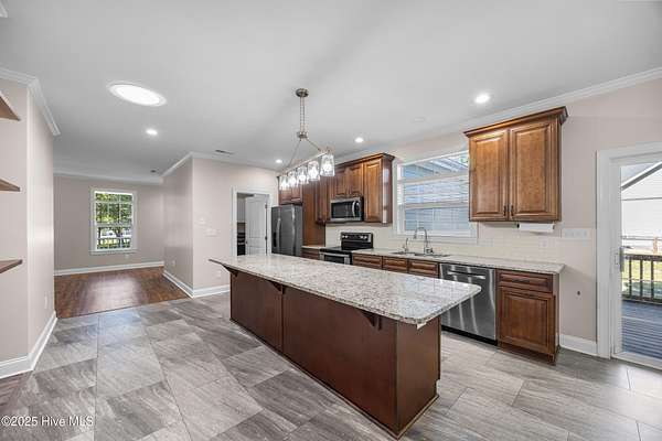 Don't miss this beautiful 3-bedroom home on 3 acres with a large kitchen island and bonus room. Nestled on a quiet cul-de-sac in the sought-after Topsail school district this home offers over 2,100 sq. ft. of versatile living space. The thoughtfully designed layout includes a spacious bonus room with its own full bath, ideal for guests or a home office. At the heart of the home, the large kitchen island opens to the living area, creating a perfect space for entertaining. The primary suite features a walk-in closet, dual sinks, and a walk-in tile shower for a spa-like retreat. Step outside to enjoy a screened porch, extended deck, fenced backyard, and two utility sheds all backing up to a peaceful wooded setting. Additional highlights include a brand new roof, reverse osmosis water system for clean drinking water, wiring for whole house generator, 6.5ft high encapsulated craw space, a two-car garage with a wide driveway for extra parking, fresh paint and other thoughtful updates throughout. Just a short drive to Wilmington and Topsail Beach, this home blends comfort, convenience, and location in one exceptional package.