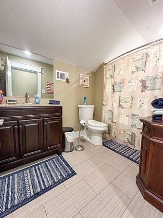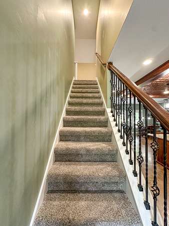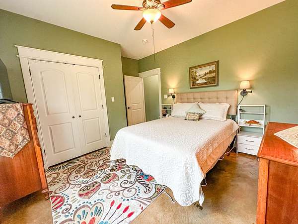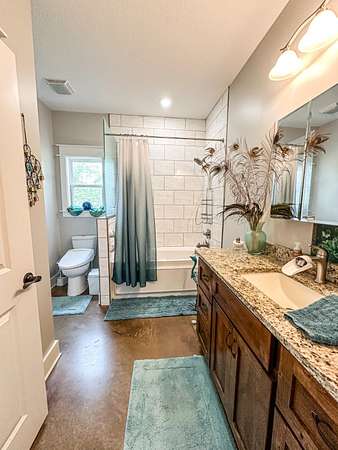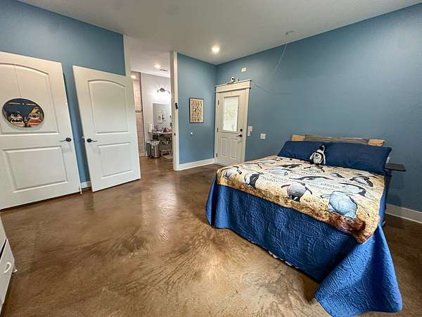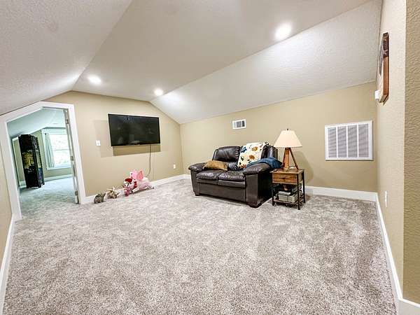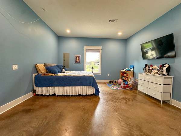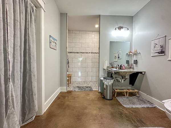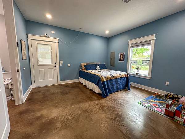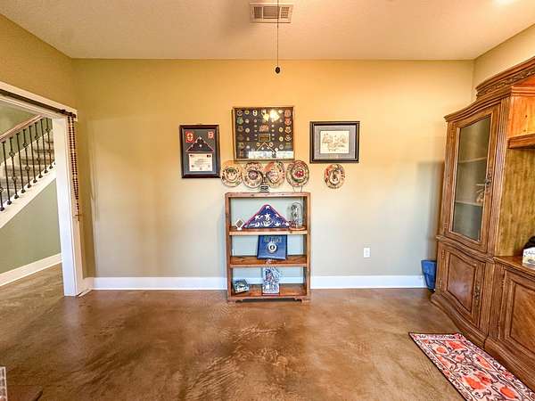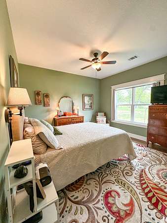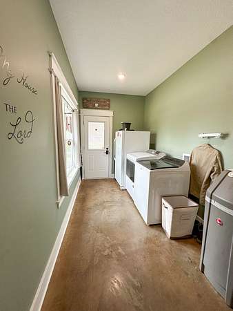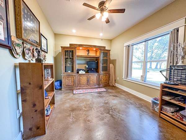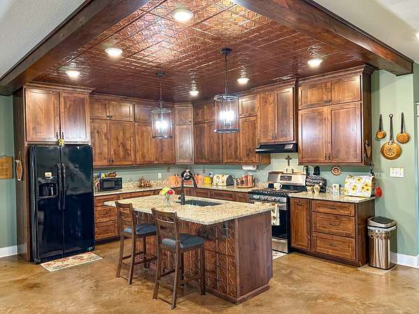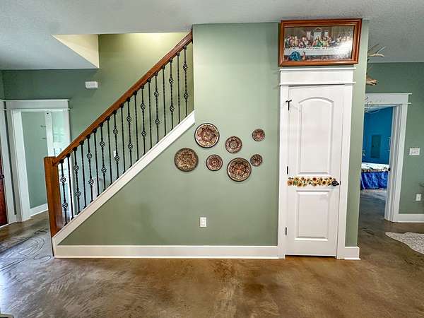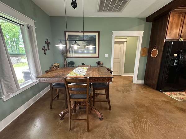 This stunning 2,632-square-foot Craftsman-style home, built in 2021, captures your attention the moment you turn into the driveway. Upon entry, you'll immediately notice the custom features and thoughtful details that make this residence truly one of a kind-most notably, its comprehensive handicap accessibility throughout the main floor. A beautifully etched compass rose welcomes you inside. To your left, the laundry room offers convenient access directly from the drive-through carport. To your right, a spacious office provides the perfect space for work, study, or crafts. Straight ahead, the open-concept kitchen, dining, and living areas create a bright, airy atmosphere. The kitchen's copper ceiling tiles add warmth and character, while the gas cooktop and combination bake/air-fry oven make it a chef's dream. Granite countertops and custom cherry wood cabinets extend to the ceiling, offering both beauty and abundant storage. The primary suite was thoughtfully designed with full wheelchair accessibility. Both the bedroom and bathroom feature wide doorways and ample space for mobility. Additional ceiling support accommodates a lift and trolley system (not installed) for easy movement between the bed and bathroom. The bathroom includes an open sink design for wheelchair access and a ground-level walk-in shower for seamless entry. This suite also has a private entry/exit door directly connected to the carport. On the opposite side of the home, you'll find two comfortable guest bedrooms and a full bathroom. Upstairs, there's a spacious family room, two additional bedrooms, and another full bath-perfect for guests or a growing family. Step outside the back door onto the covered porch and enjoy serene views of the tree-shaded lawn, green pasture, and newly added pond. The expansive yard provides ample space for gardening, small animals, and outdoor play. A Bald Eagle Barn offers additional storage, complemented by an older shed for equipment. This thoughtfully designed property combines craftsmanship, comfort, and accessibility-making it a true must-see!