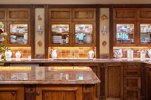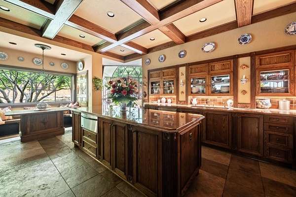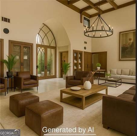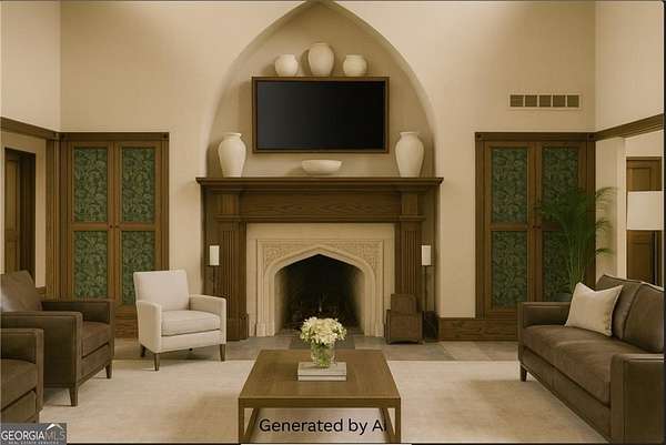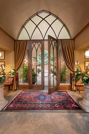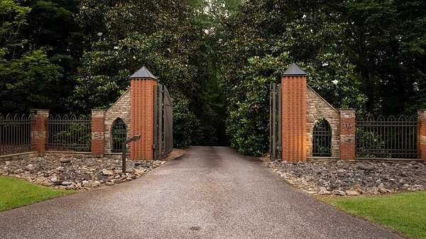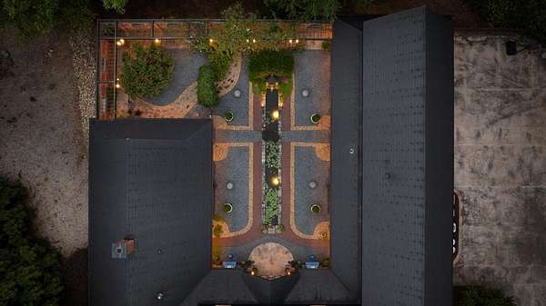 Nestled on approximately 8 private, gated acres, this extraordinary architectural masterpiece blends timeless elegance with luxurious, modern amenities. With 4 bedrooms, 4 full baths, and 2 half baths, the estate is a sanctuary of bespoke design and enduring craftsmanship at every turn. From the moment you arrive, you're greeted by a showstopping copper roof, fascia, and gutters - a stunning and enduring feature that sets the tone for the home's unmatched quality. The maintenance-free exterior offers beauty and peace of mind. Step inside to heated concrete floors on the main level and gleaming hardwoods upstairs, complemented by solid oak doors, hand-cut oak trim, and custom woodwork throughout. The heart of the home is a gourmet kitchen designed for both everyday luxury and effortless entertaining. A Wolf range framed by stone and brick is paired with a striking copper backsplash that echoes the home's distinctive exterior. High-end appliances include a Sub-Zero refrigerator, a separate Sub-Zero freezer, and a Thermador warming drawer. The adjacent scullery and butler's pantry - a caterer's dream - offer custom built-in cabinetry, a wine rack, and generous prep space. The scullery opens directly to the private courtyard, allowing for seamless indoor-outdoor entertaining centered around the stunning 35-foot reflecting pond. The primary suite is an indulgent retreat, offering his and hers separate bathrooms - one with a steam shower - and a show-stopping two-story custom closet complete with a rolling library ladder. A private office with a built-in safe room provides both function and security. Every feature in this home was thoughtfully designed - from the commercial-grade drainage system beneath the surface to the custom cabinetry, antique lighting, and artisan details throughout. Antique European chandeliers, including a grand entryway piece imported from France, add dramatic charm, while locally painted stained-glass windows bring a distinctive artistic touch. Glass display cabinetry and custom bookcases are thoughtfully placed throughout. An elevator offers seamless access to all levels, including a soundproof apartment with full kitchen and private entrance above the heated and cooled 3-car garage - ideal for guests or multigenerational living. Outdoors, unwind in a landscaped courtyard featuring the reflecting pond filled with goldfish, outdoor lighting, and a full irrigation system. Additional highlights include barreled ceilings, a central vacuum system, surround sound in the great room, a water purification system, and more. This one-of-a-kind estate is more than a home - it's a curated experience of luxury, privacy, and artistry. Shown by private appointment only.