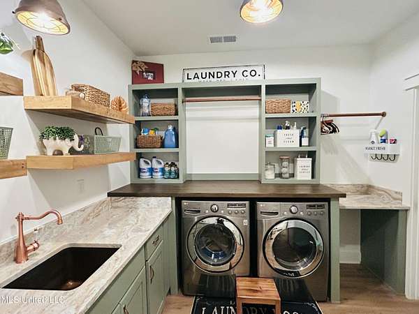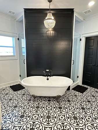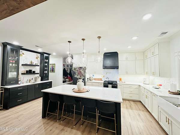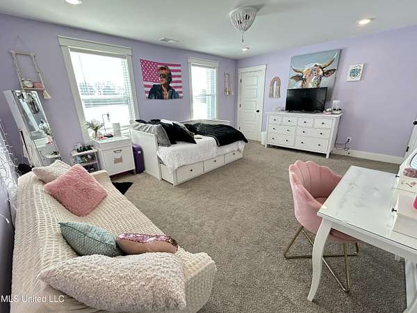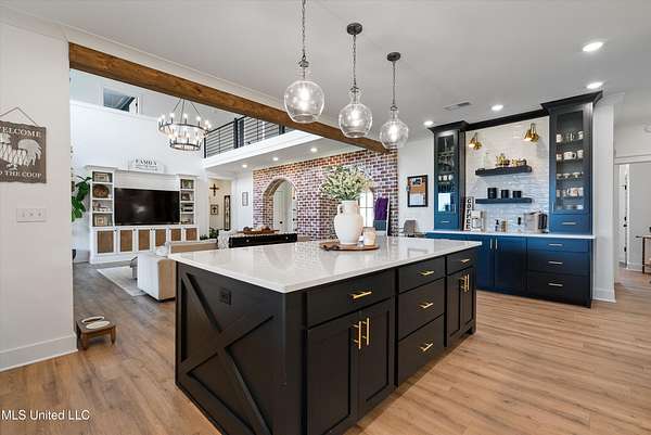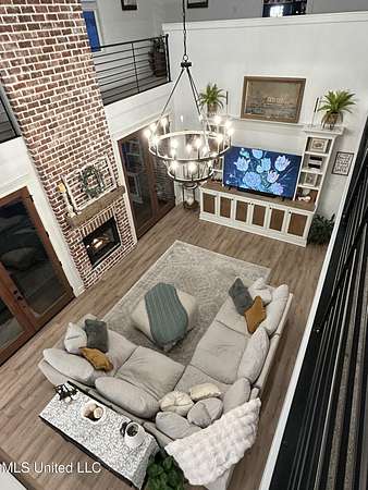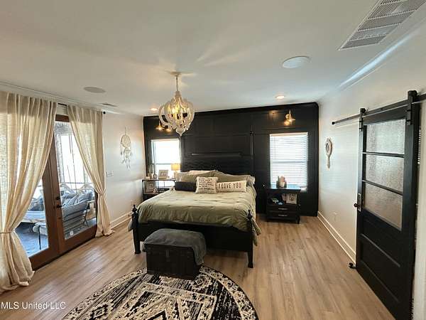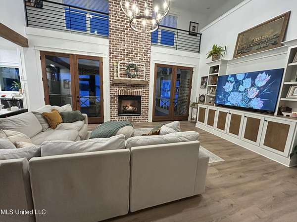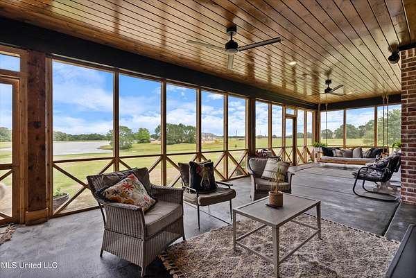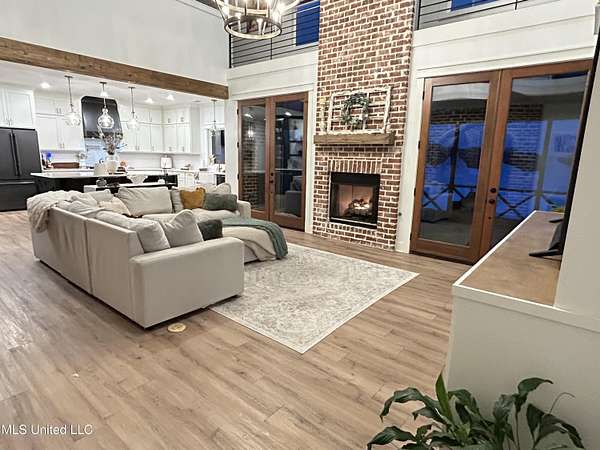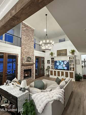 Gated community. Two lakes. Unmatched sunsets. Built in 2022, this stunning custom farmhouse blends luxury, function, and privacy-every detail intentionally designed. Offering 6 bedrooms and 4.5 baths, the home features an open lookout over the living and kitchen areas, a private theater with built-in surround sound, and a massive bonus room over the garage. The heart of the home is a chef's kitchen with a 10-foot island, quartz and granite countertops, double-stacked custom cabinetry, farmhouse sink with lake views, and a pass-through window to the outdoor kitchen-perfect for entertaining. Enjoy year-round outdoor living with a full-length screened cedar porch, outdoor kitchen, half bath, and breathtaking lake views. The front porch spans the entire home, topped with a metal roof-ideal for morning coffee or listening to the rain. The primary suite is a true retreat featuring a clawfoot soaking tub, walk-through spa shower with dual and rain heads, surround sound, and his-and-her custom closets (9x18 each). Every bedroom offers unique design and oversized custom closets. Additional highlights include: * Four HVAC zones with spray-foam insulation (average utilities under $200/month) * Two tankless water heaters * Custom pantry, mudroom, and laundry with built-ins (plus a dedicated dog room!) * Epoxy-coated garage floors with slatwall storage This home is one of a kind-you truly have to see it to believe it.Schedule your private showing today.