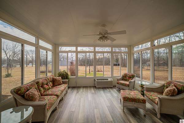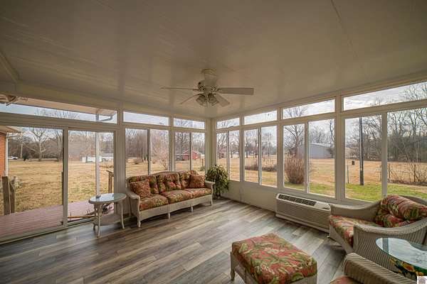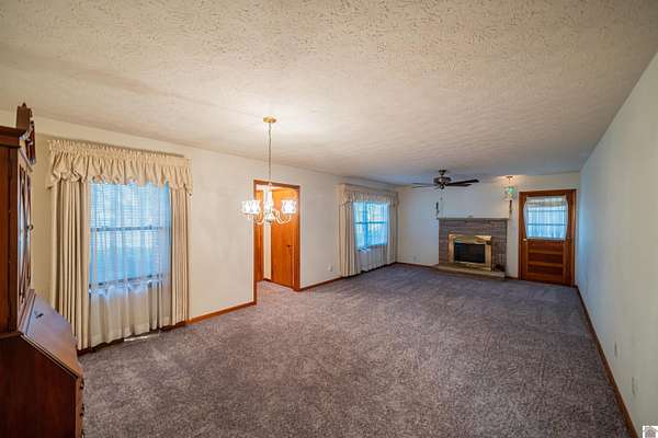 Welcome home to this brick ranch nestled on 2.03 acres! Inside you will find two bedrooms and two bathrooms with an open concept living and dining room. Enjoy your morning coffee or unwind in the gorgeous glass-enclosed sunroom overlooking the back yard.The home features newer windows,HVAC and roof for peace of mind plus brand new carpet in the main living area.Hardwood floors add a touch of warmth and character throughout the bedrooms and hallway.You'll love the pink vintage bathroom that adds a touch of retro charm. With a one car atached and a two car detached garage there's plenty of room for vehicles,hobbies or stroage.Conveniently located close to shopping and amenities,this property offers the perfect blend of privacy and accessibility! Come check it out.