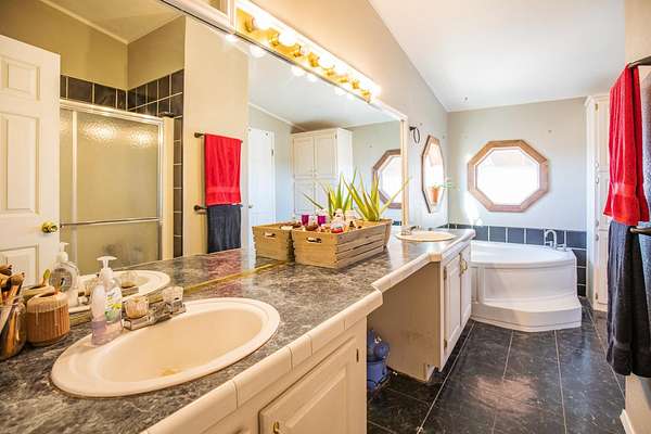 - Carpet, Double Sinks, Fireplace, Fireplc, Jet Tub, Liv RM, Partial, Skylight, Split Floor Plan, Tub & Shower, Walk-In Closet, Wood Burning