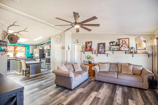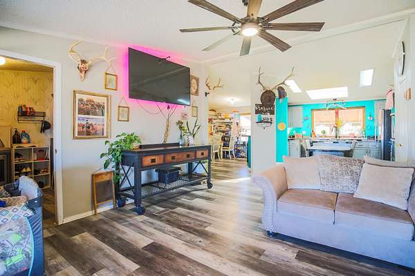 Welcome to 114 Oliver Rd, your forever homestead! This home features a large paid-off solar system, 80 x 40 powered & heated workshop, gorgeous mountain views, and fifteen fully fenced acres along the property. This all comes together to create a rare property that truly has it all. This homestead offers sustainability, space, comfort, and privacy in one beautiful package. The home features approximately two thousand three hundred square feet of living space with three to four bedrooms, two and a half bathrooms, and two large living areas that are perfect for both everyday living and gatherings. Owned solar panels help reduce utility costs all year long. The property also has a fully fenced garden with a timed sprinkler system, powered greenhouse, established fruit trees, and livestock ready areas such as pens and two separate chicken coops to make the property ideal for anyone interested in gardening, hobby farming, or a more self-sufficient lifestyle. The large workshop includes power, a loft for storage and a woodstove, creating an excellent space for projects, woodworking, storage, or a home-based business. The flexible layout of the home allows for office space, guest rooms, or additional bedrooms depending on your needs. Outside, the property offers fifteen acres of fully fenced land. A full RV/camper hookup, a timed sprinkler system for both backyard and front yard, drip irrigation to many of the trees along the property, and large covered porches with a hot tub that overlooks the beautiful Sacramento Mountain views. The setting provides endless opportunities for recreation, expansion, farming, or simply enjoying the peace and quiet of country living. This is a unique opportunity to own a property that combines acreage, sustainability, and modern conveniences in one location. 2% Seller concession offered for closing costs or discount points to buy down your interest rate! Schedule your showing today!